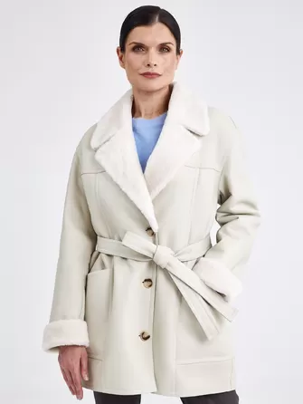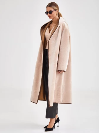 Женская молодежная длинная дубленка на молнии премиум класса 2045, бежевая, размер 50, артикул 63140