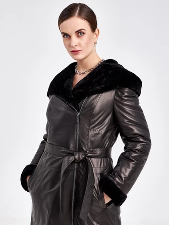 Женское пальто на молнии с норковым воротником премиум класса 2040, черное, размер 50, артикул 63640