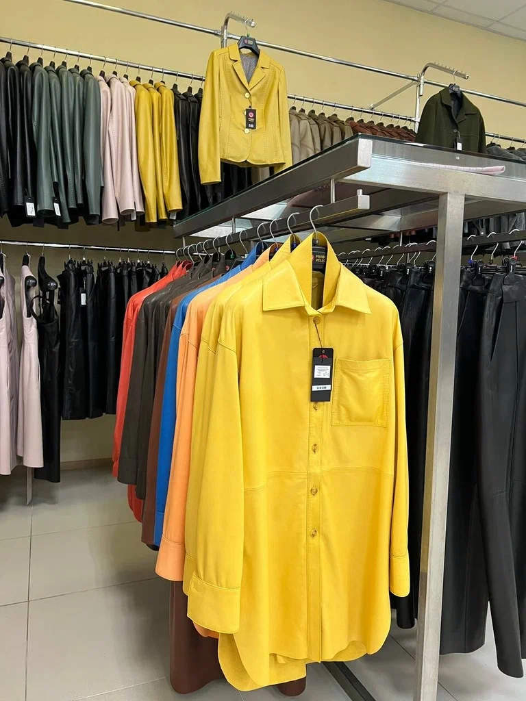 Большой и разнообразный выбор кожи, дубленок, разных цветов и фасонов.