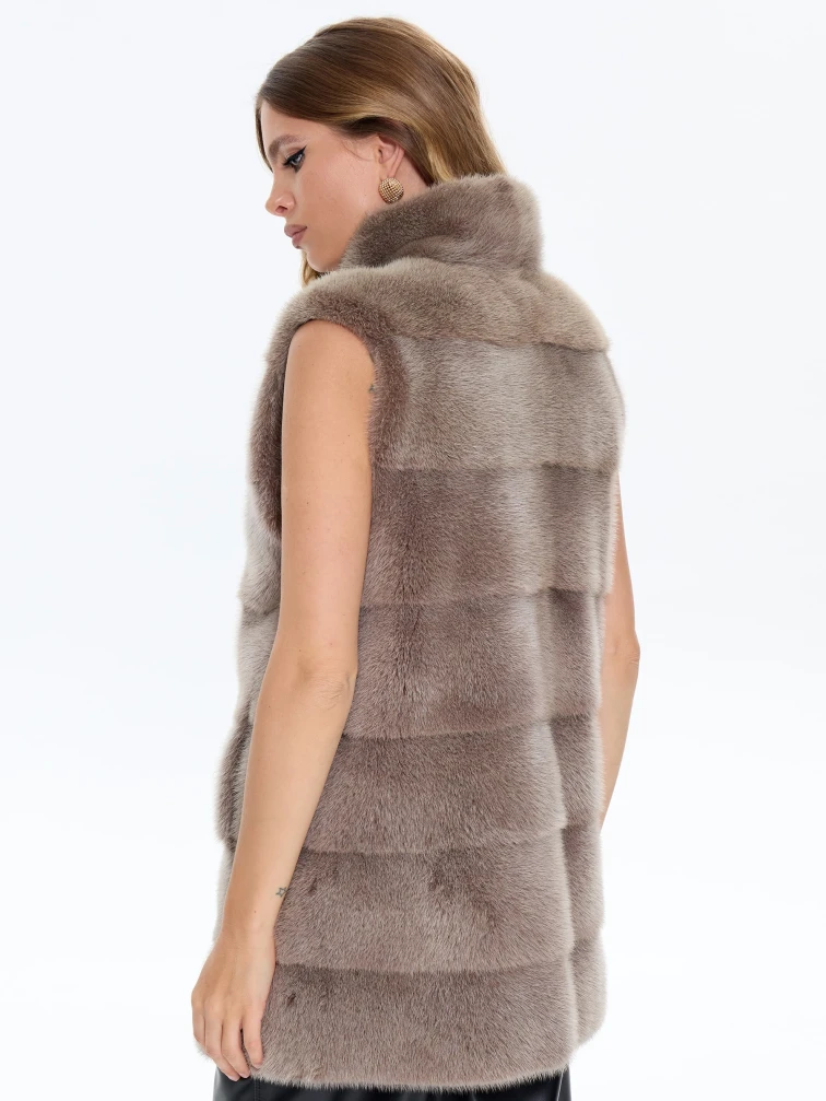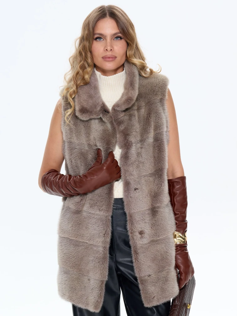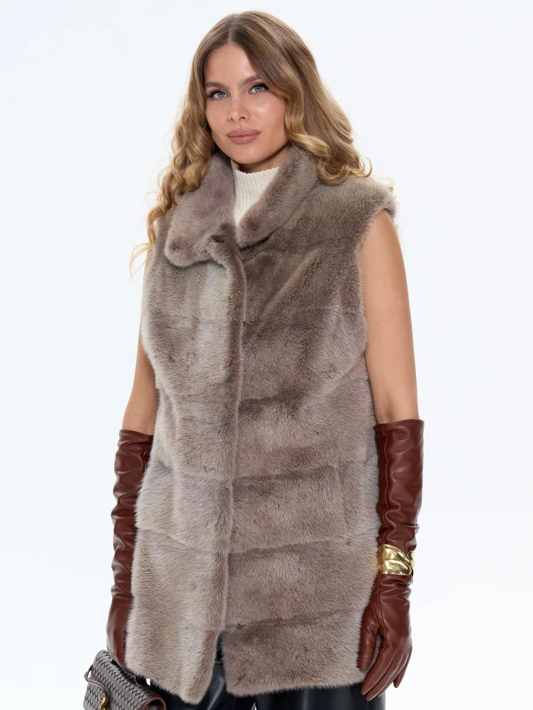 Товар бежевый норковый жилет 01, размер 44, артикул 65470 выполнен из мех норки с застежкой клипсы. Рассчитан на сезон: осень-зима. Длина изделия 75 см, силуэт прямой.