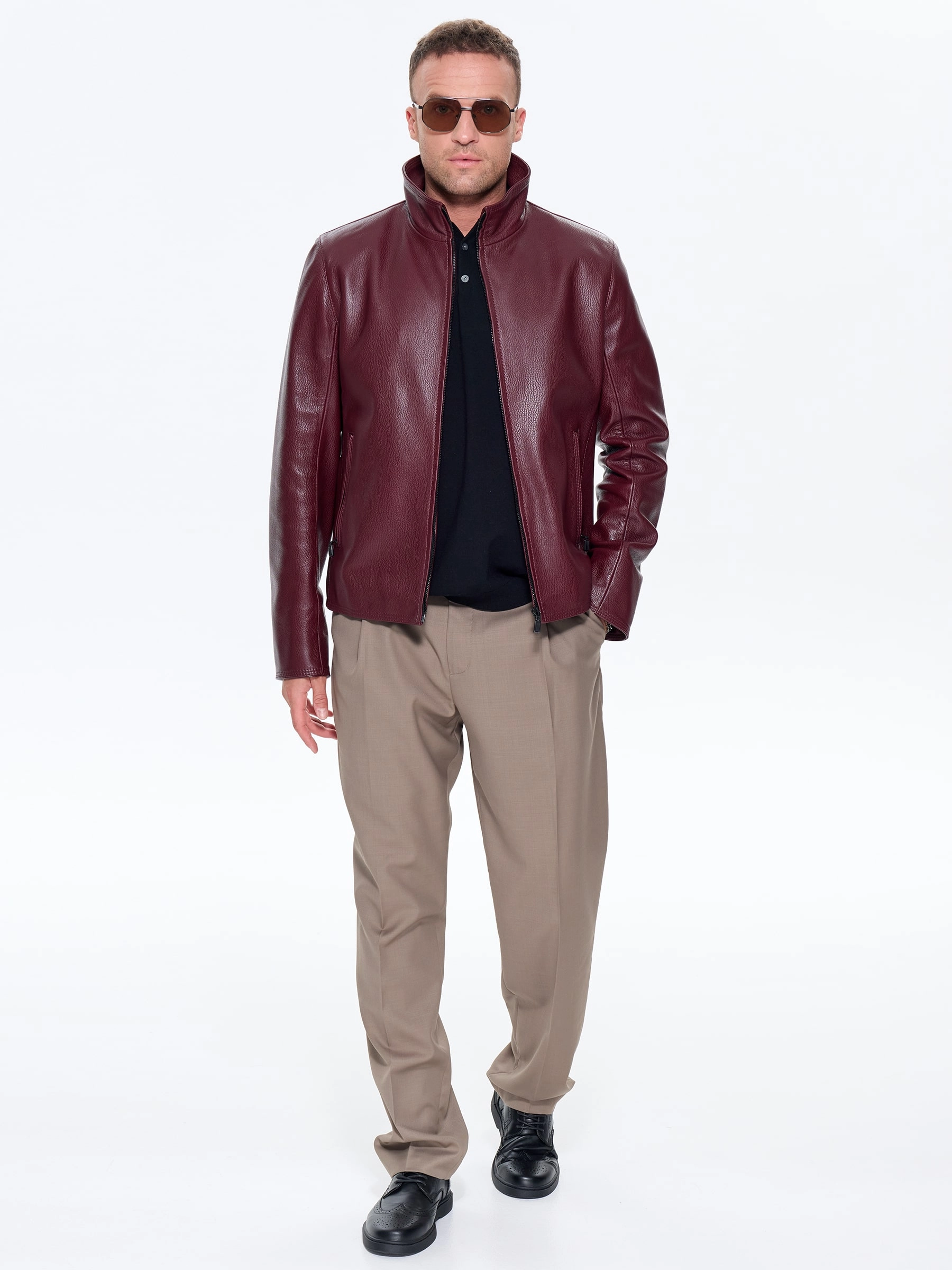 Товар бордовая мужская кожаная куртка 2010-9, размер 48, артикул 29780 выполнен из натуральной кожи с застежкой молния. Рассчитан на сезон: весна-осень. Длина изделия 65 см, силуэт полуприлегающий.