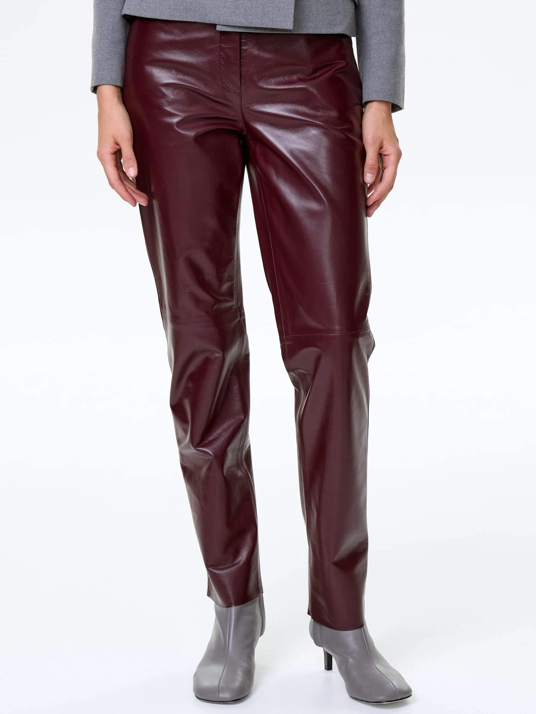 Бордовые зауженные кожаные женские брюки 02, размер 42, артикул 85492