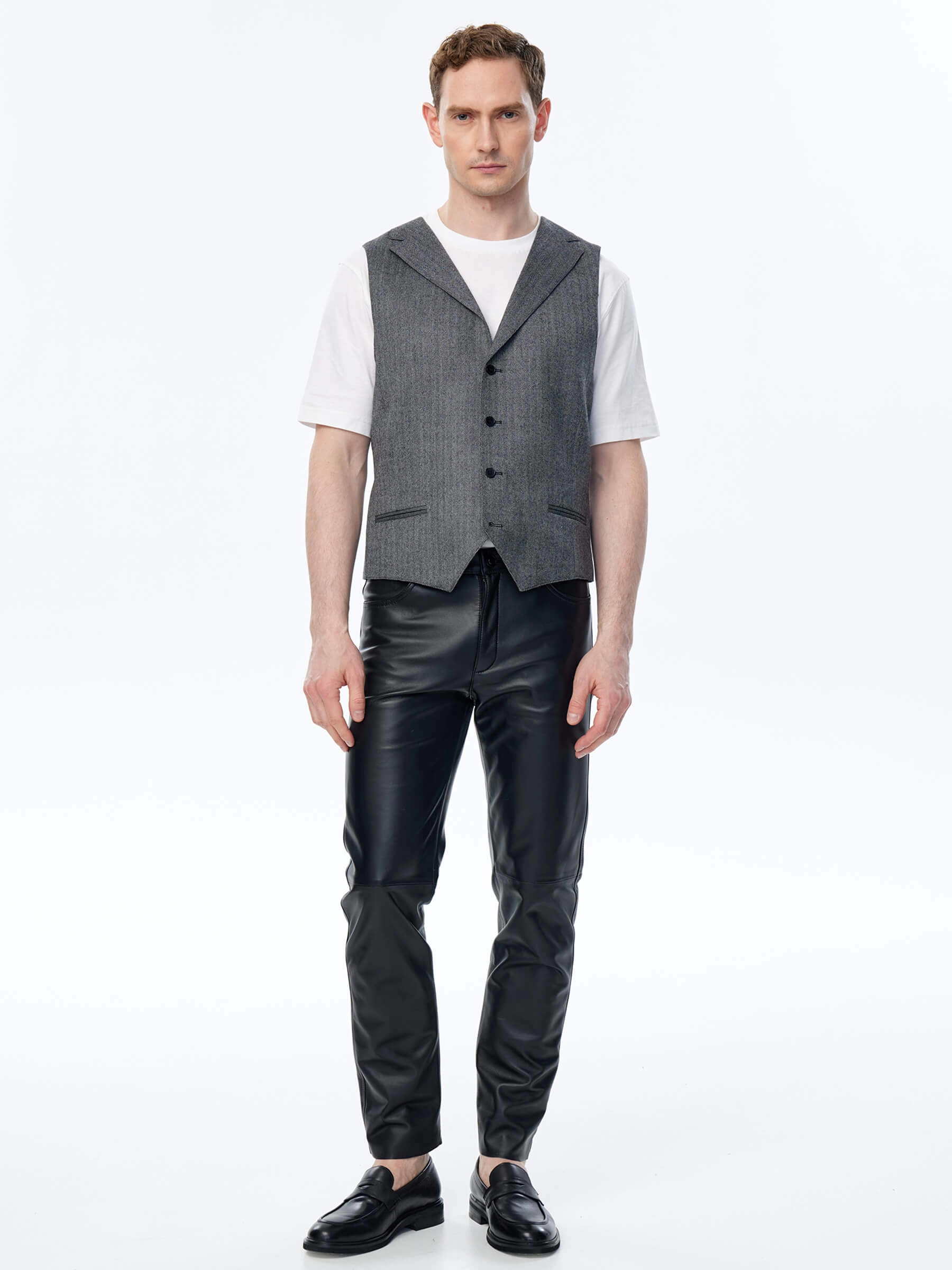 Прямые кожаные джинсы с классическим кроем. Модель поможет сформировать самые разные образы, одинаково удачно сочетаясь как с футболкой и кедами, так и с пальто и челси. Кожа особенно мягкая и слегка эластичная, поэтому вещь комфортно садится по фигуре и не сковывает движения.