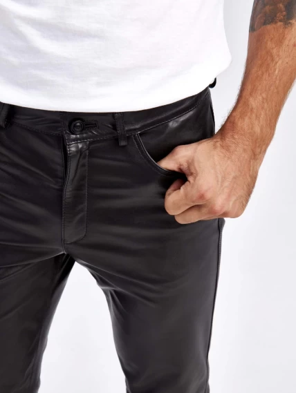 Мужские брюки из натуральной кожи премиум класса 01, черные, размер 48, артикул 120012
