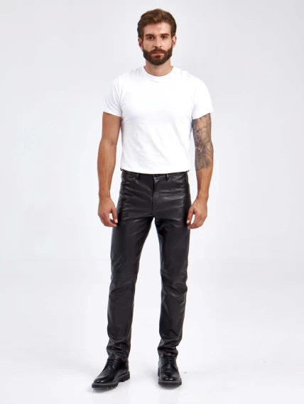 Товар мужские брюки из натуральной кожи премиум класса 01, черные, размер 48, артикул 120012 выполнен из натуральной кожи с застежкой молния. Рассчитан на сезон: демисезон. Длина изделия 103 см, силуэт прямой.