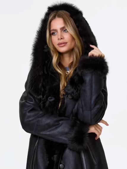 Черная женская дубленка из тосканы с капюшоном 132, размер 48, артикул 64590
