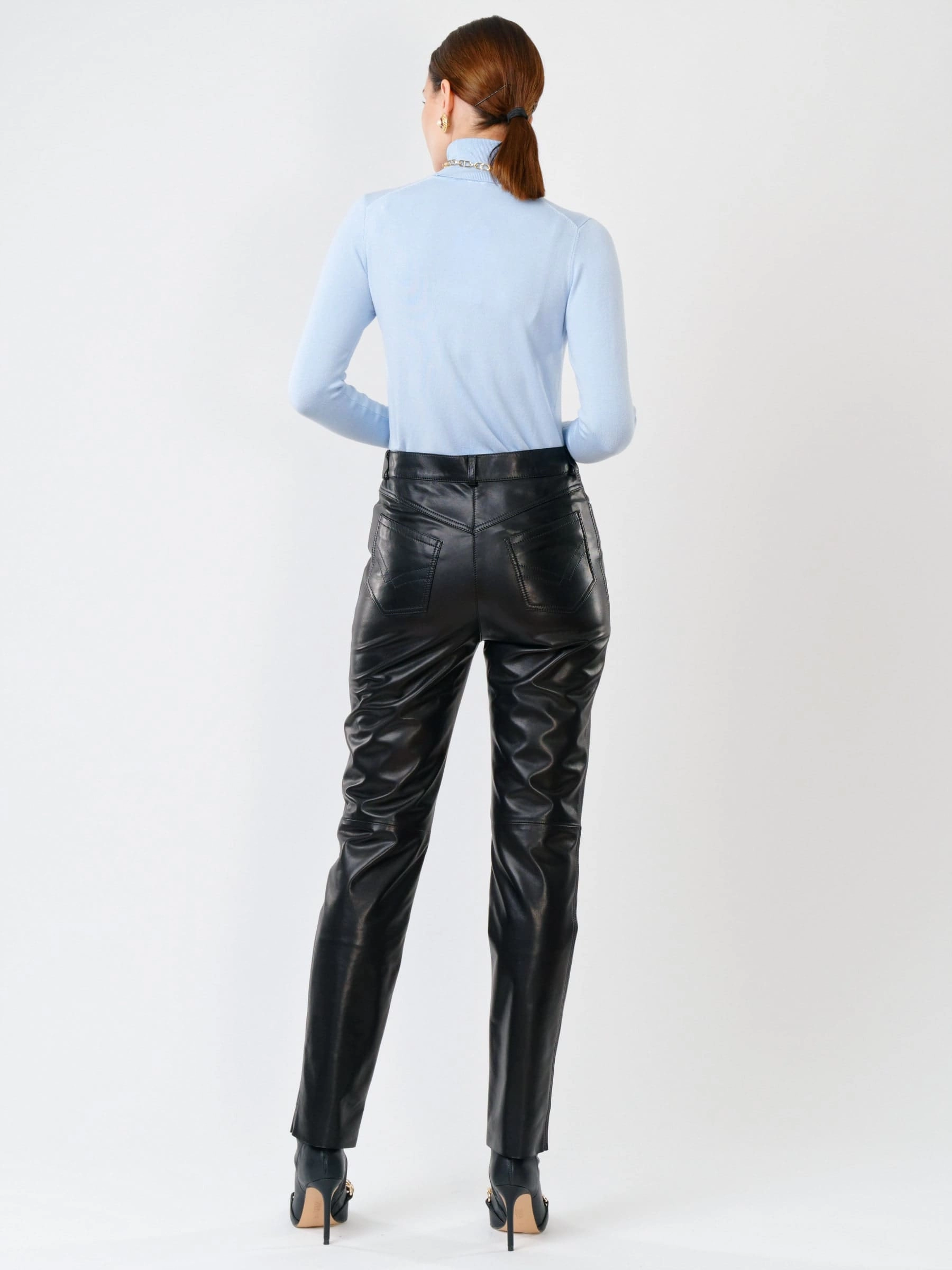 Товар черные зауженные женские кожаные брюки 02, размер 44, артикул 85232 выполнен из натуральной кожи с застежкой молния. Рассчитан на сезон: демисезон. Длина изделия 105 см, силуэт прямой.