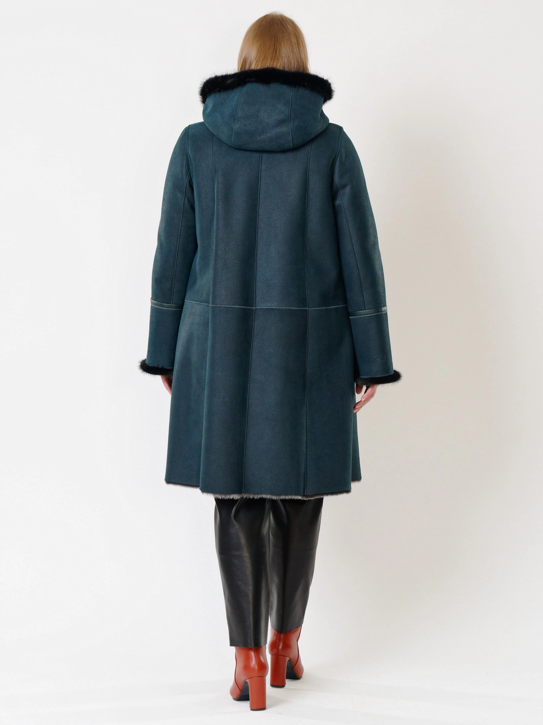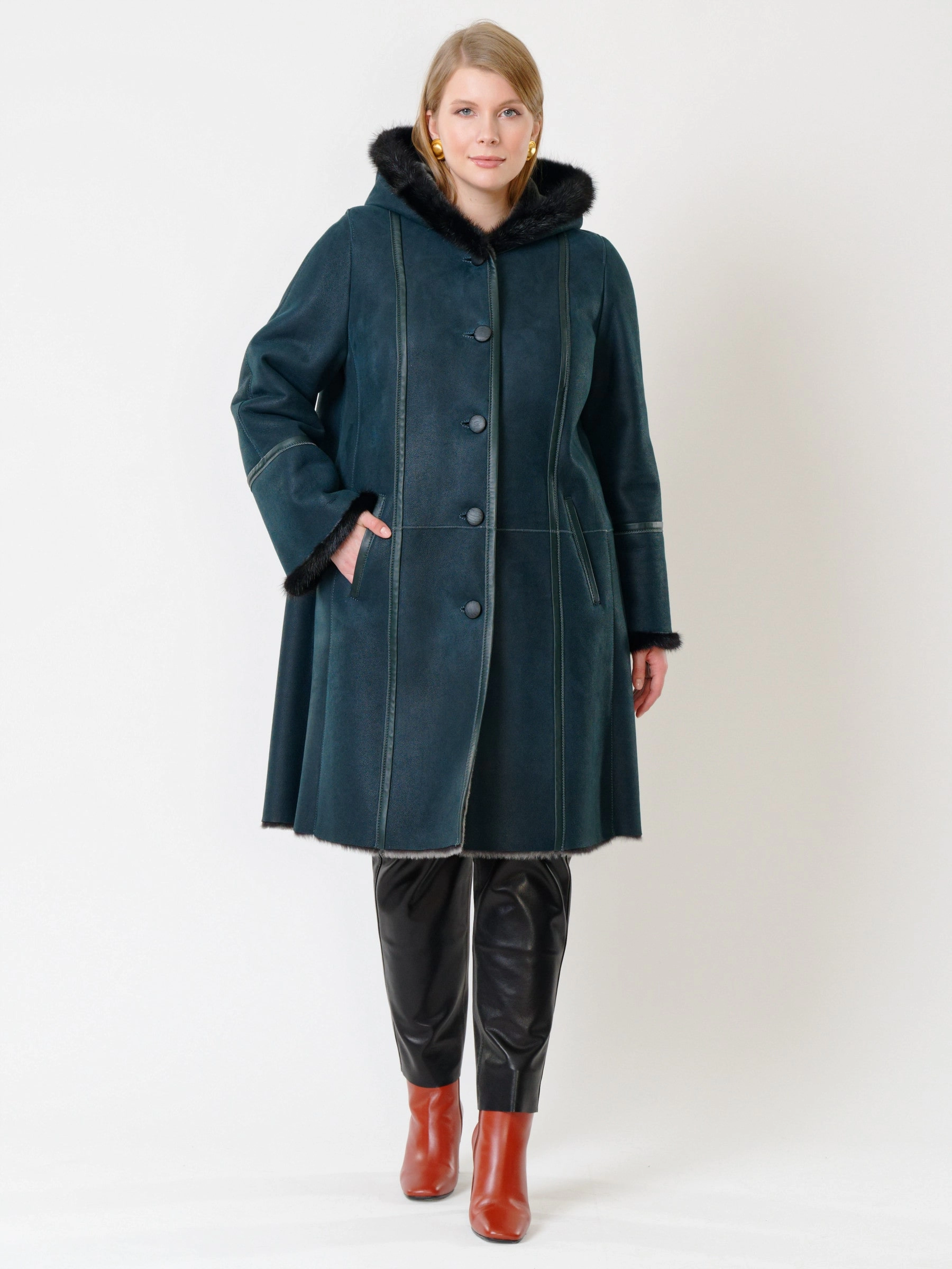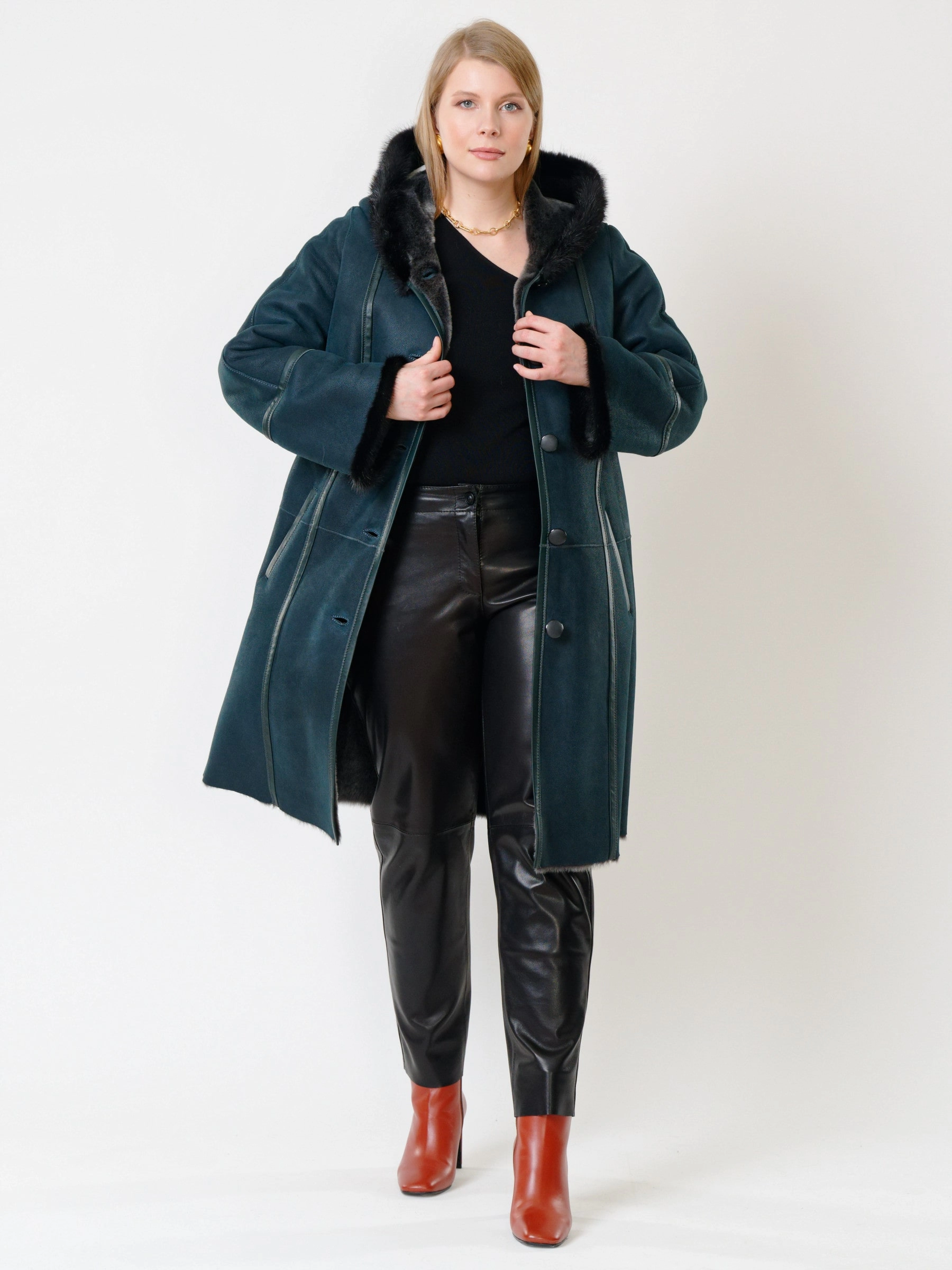 Классическая дублёнка oversize с капюшоном и кожаные брюки. Нежнейшая овчина мерино c отделкой мехом норки. Удобный капюшон. Премиальное качество меха и кожи. Комфортная посадка по фигуре.