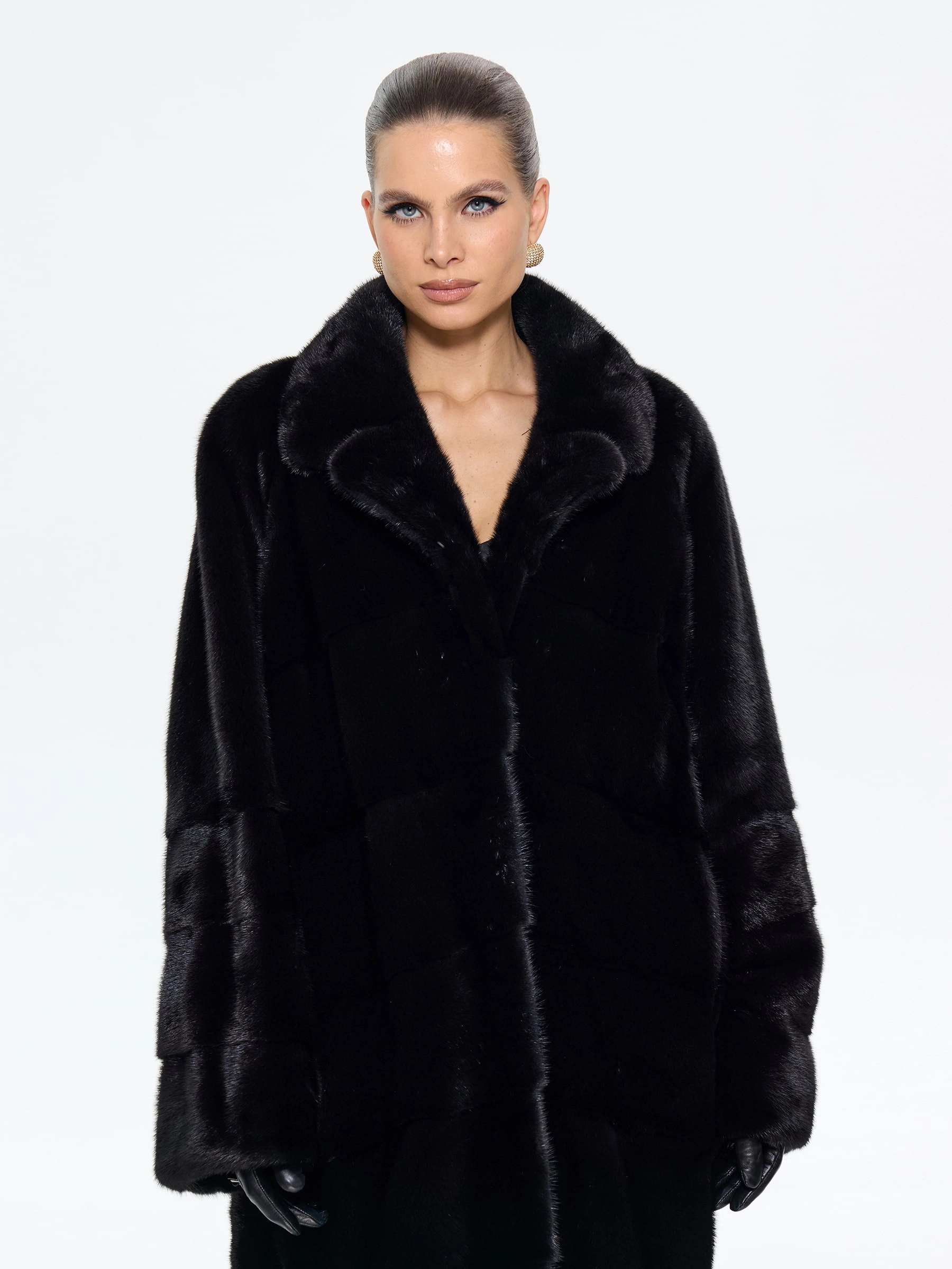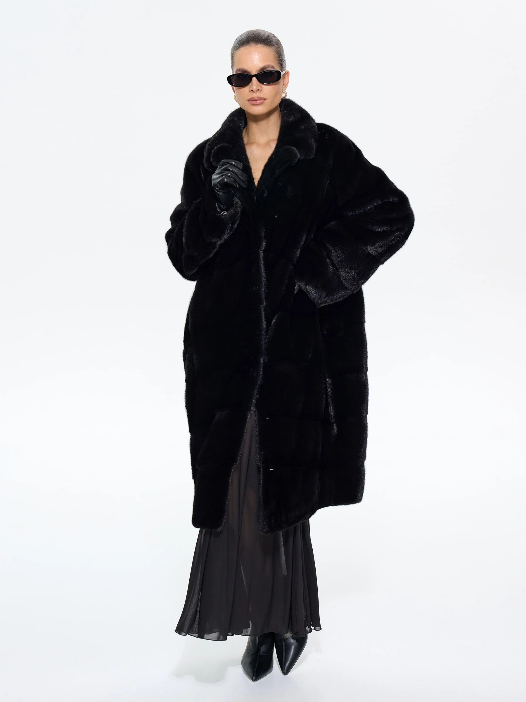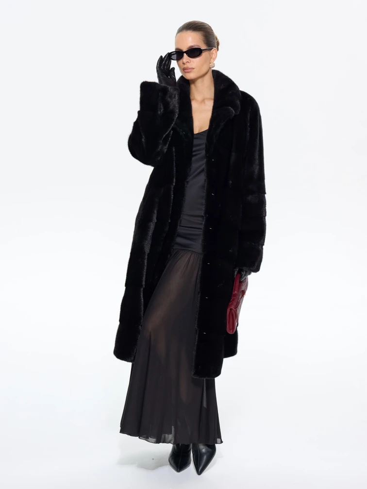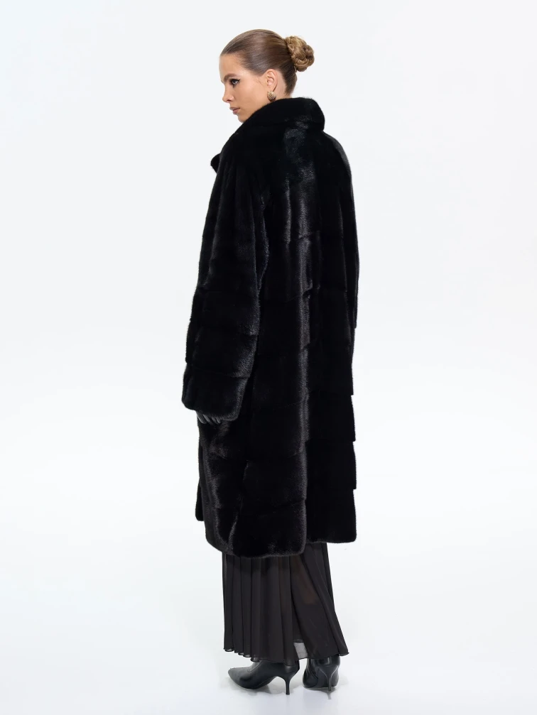 Шуба из натуральной норки — это синоним безупречного вкуса и вневременной элегантности. Данная модель с роскошной поперечной выкладкой меха и длиной 110 см воплощает в себе эталон роскоши и согревающего комфорта. Это не просто верхняя одежда, а статусная инвестиция в ваш образ, подчеркивающая статус и невероятную женственность. Эта шуба не требует сложных комбинаций. Ее сила — в мощи и красоте самого меха.