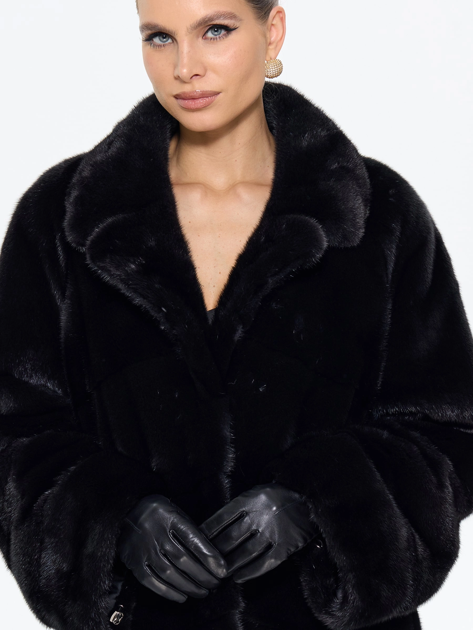 Длинная женская норковая шуба М-102- 1901, черная, размер 52, артикул 65400
