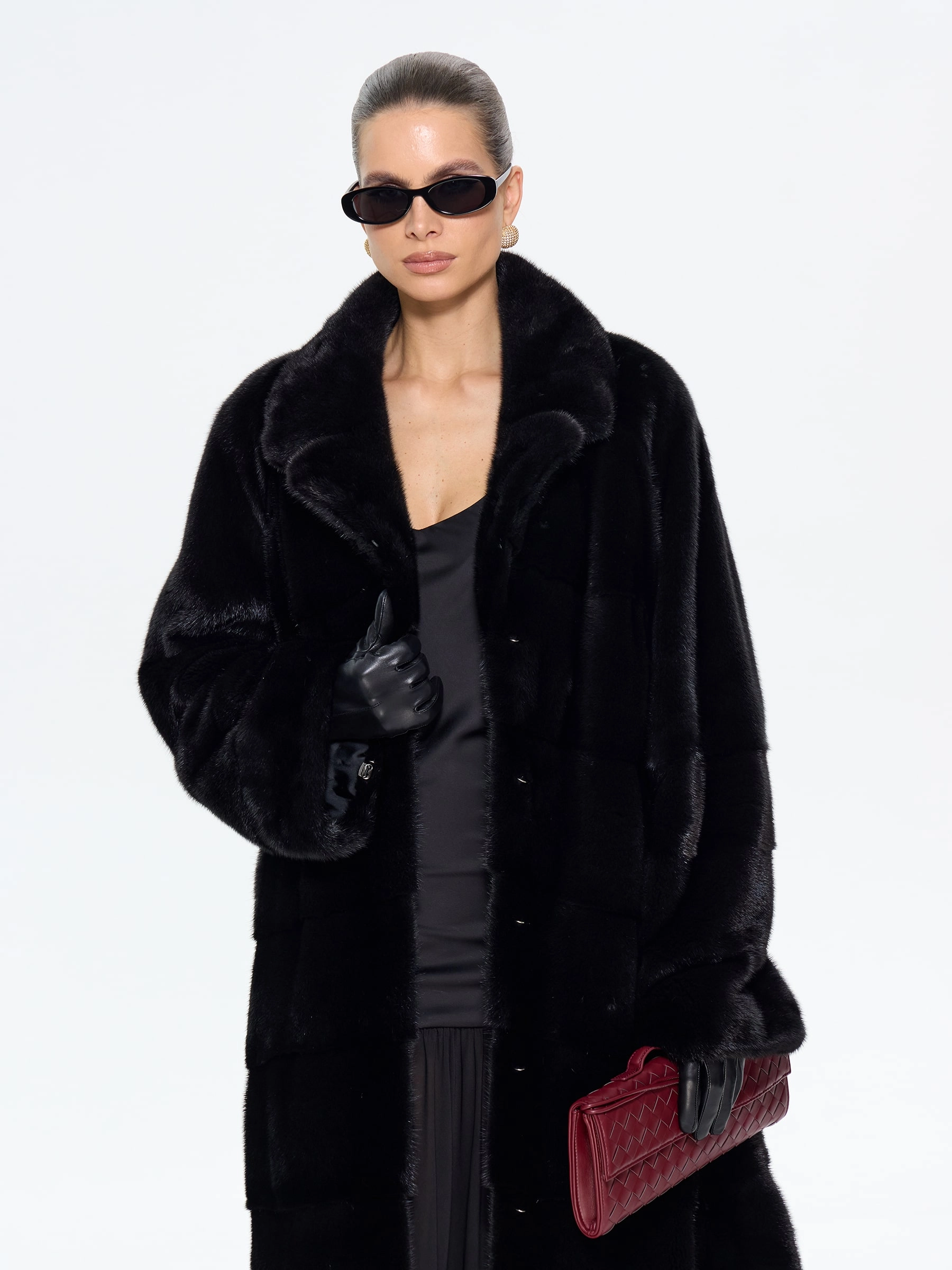 Товар длинная женская норковая шуба м-102- 1901, черная, размер 52, артикул 65400 выполнен из мех норки с застежкой клипсы. Рассчитан на сезон: зима. Длина изделия 110 см, силуэт прямой.