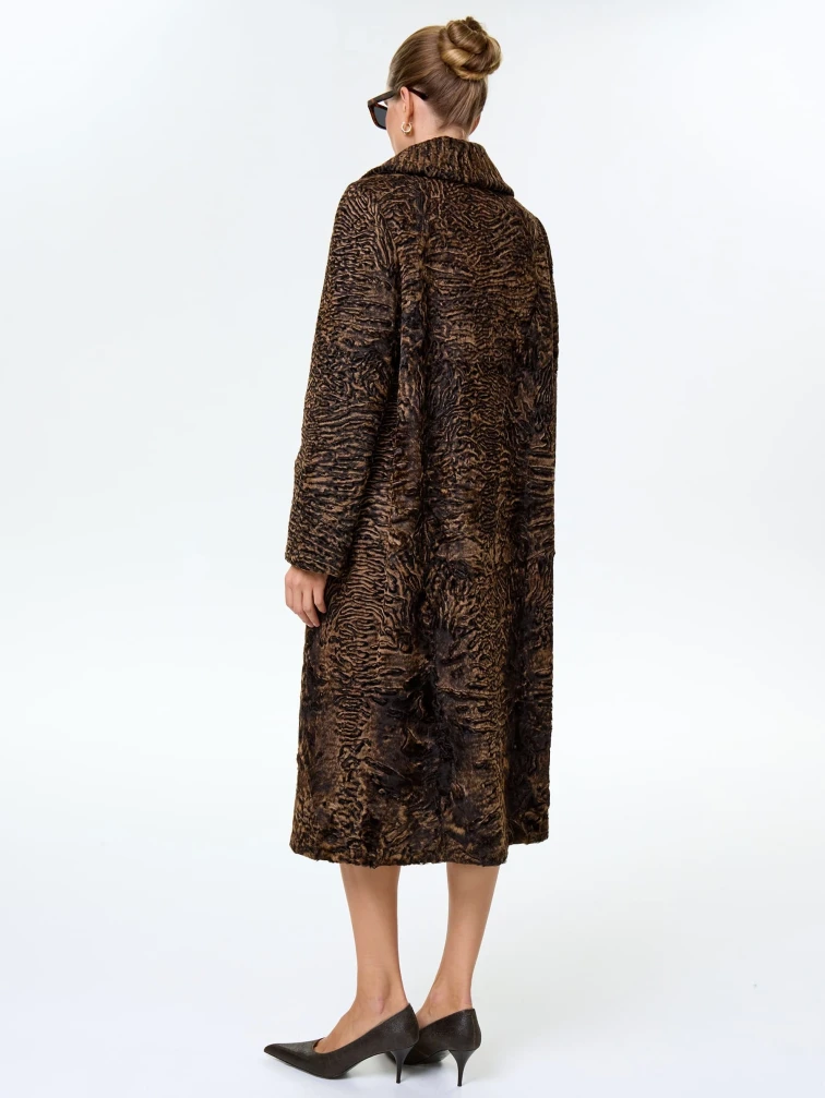 Длинная женская шуба из меха каракульчи премиум класса Лола(ав), темно-коричневая, размер 50, артикул 34000