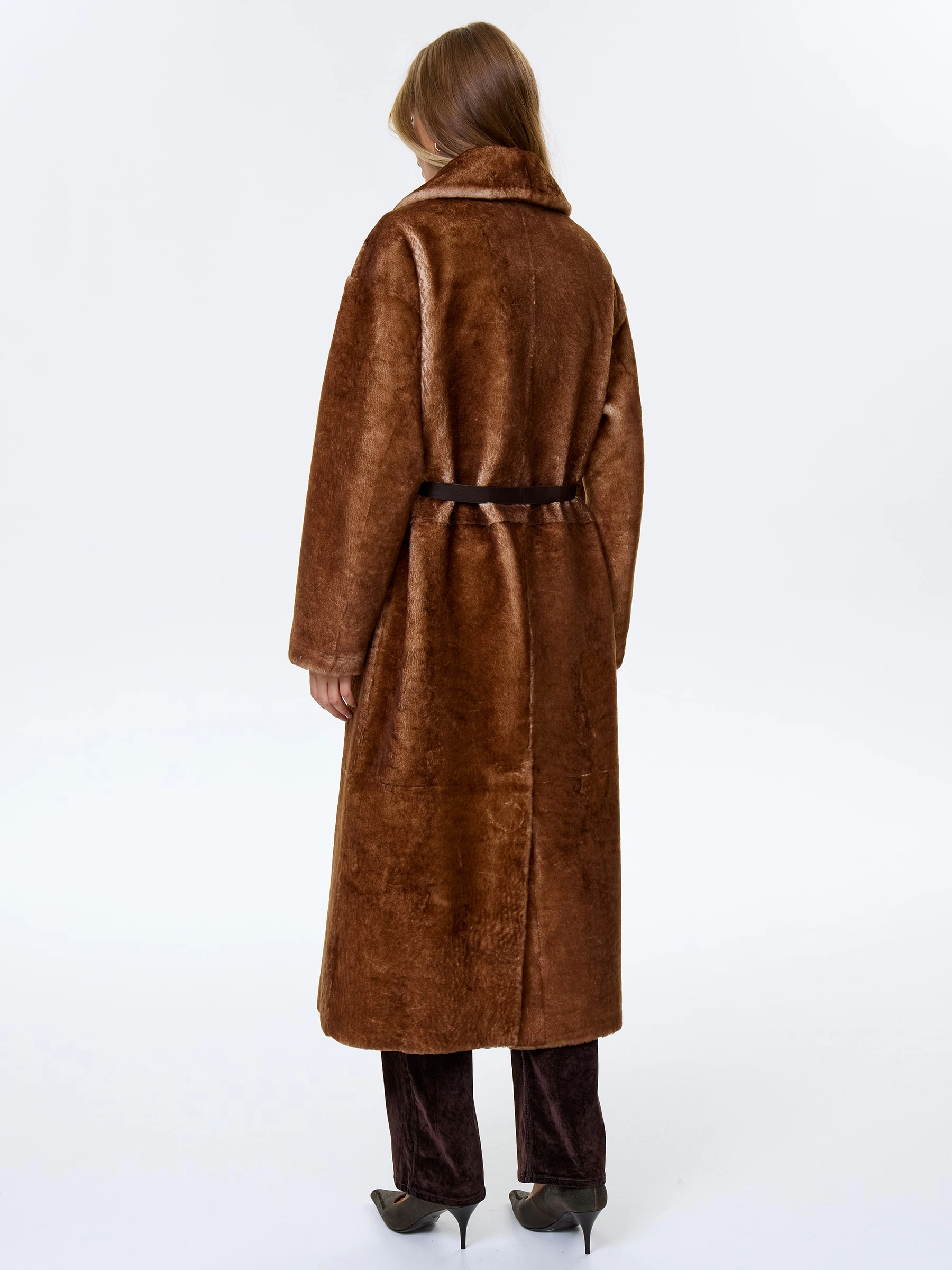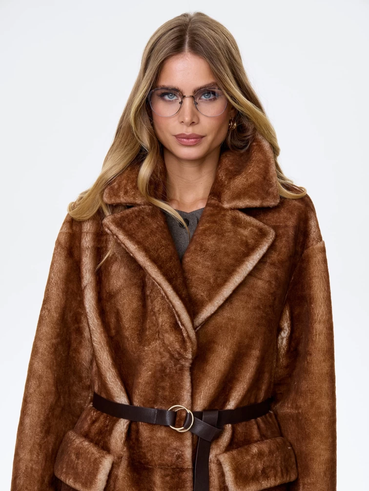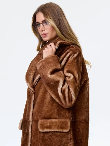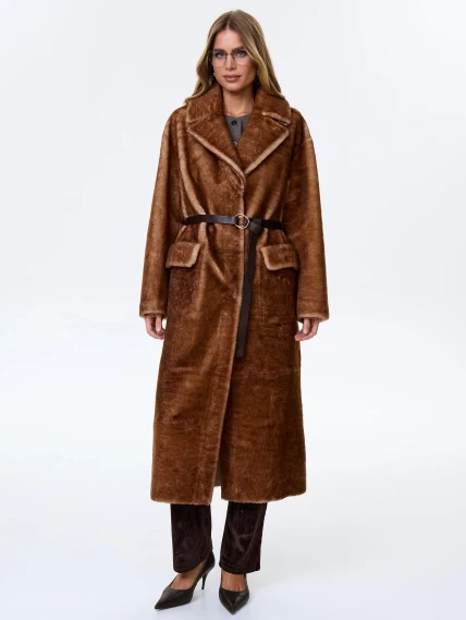 Длинное женское пальто из натуральной овчины астрагана премиум класса 2053, коричневое, размер 48, артикул 64370