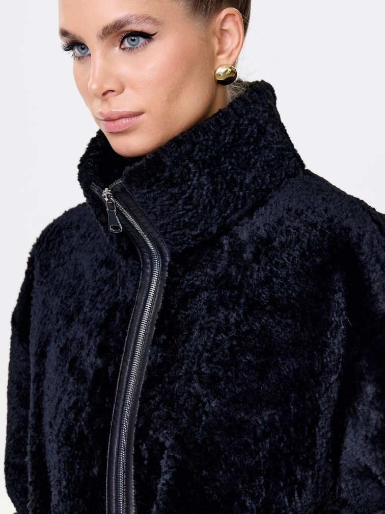 Товар длинное женское пальто из натуральной овчины астрагана премиум класса 2060, черное, размер 44, артикул 64320 выполнен из овчина "мерино" с застежкой молния. Рассчитан на сезон: осень-зима. Длина изделия 117 см, силуэт прямой.