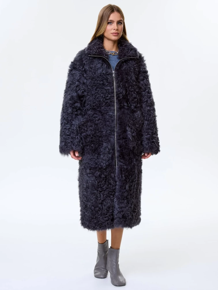 Товар длинное женское пальто из натуральной овчины тиградо премиум класса 2025, темно-серое, размер 44, артикул 64430 выполнен из овчина "тиградо" с застежкой молния. Рассчитан на сезон: осень-зима. Длина изделия 117 см, силуэт свободный.