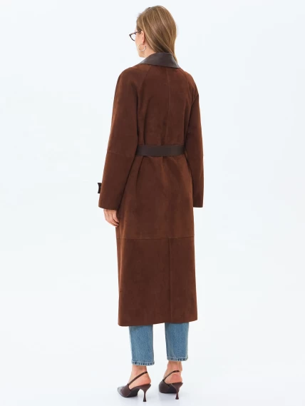 Длинный женский замшевый плащ премиум класса 3083з, коньячный, размер 48, артикул 24550