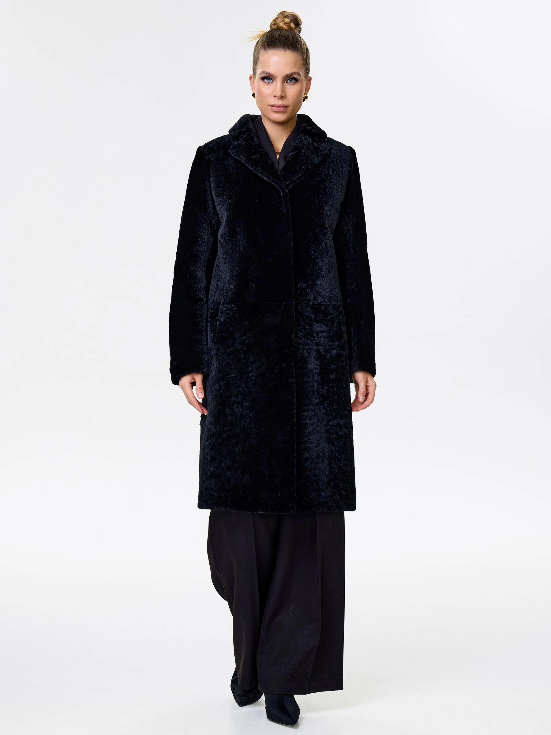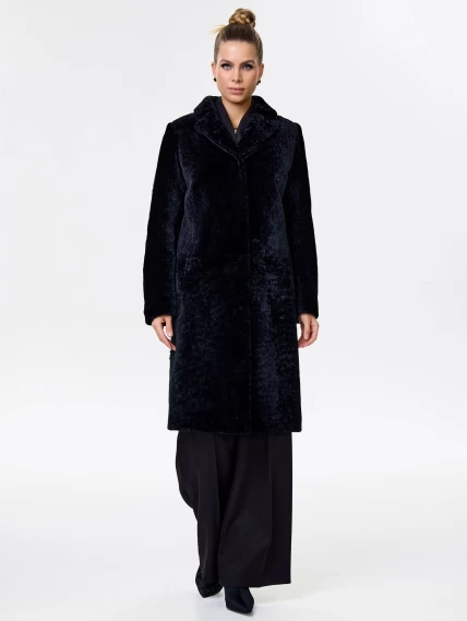Длинная дубленка из астрагана на кнопках для женщин премиум класса 53мех, синяя, размер 46, артикул 17560