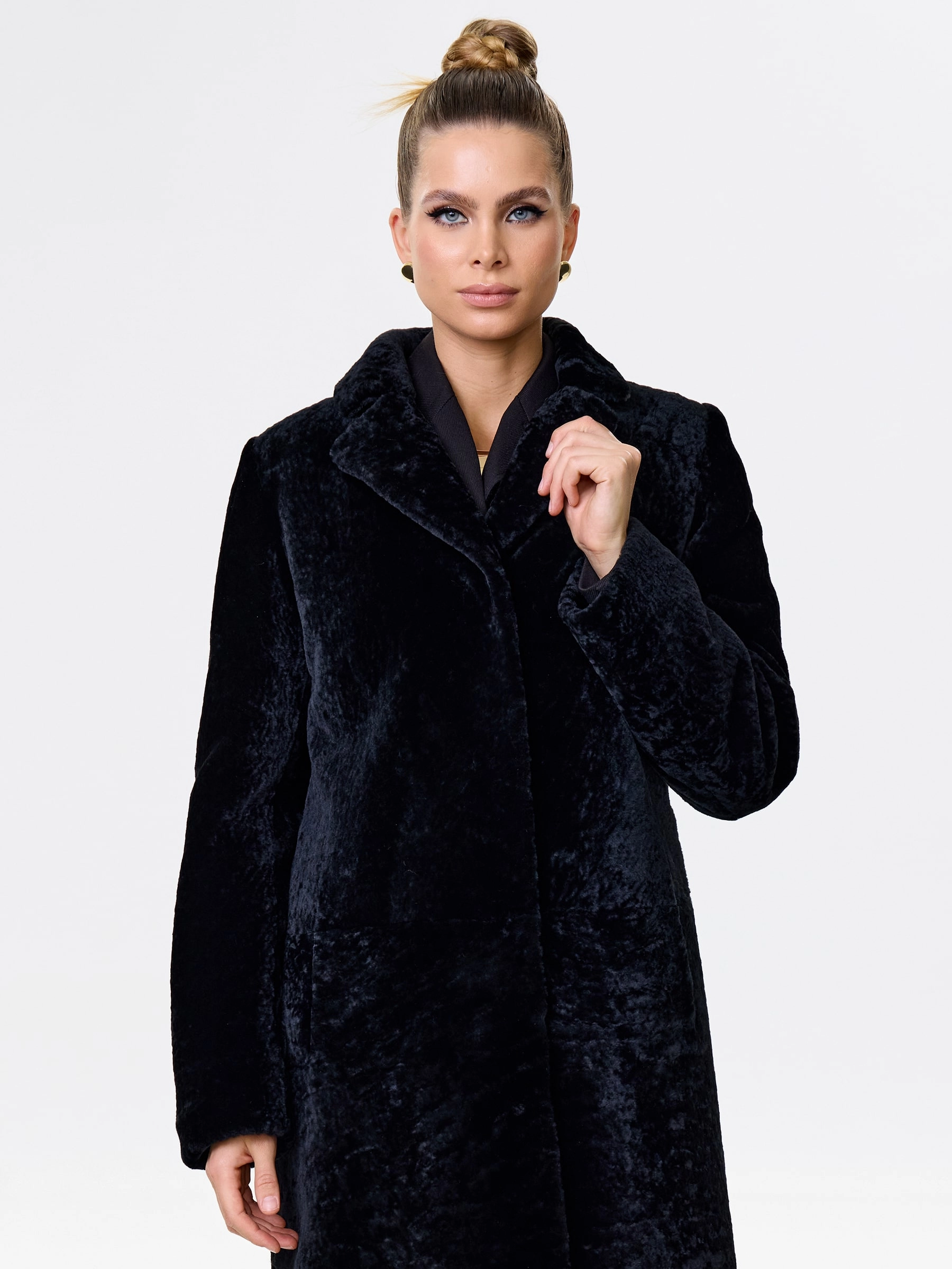 Товар длинная дубленка из астрагана на кнопках для женщин премиум класса 53мех, синяя, размер 46, артикул 17560 выполнен из астраган с застежкой кнопки. Рассчитан на сезон: осень-зима. Длина изделия 75-90 см, силуэт прямой.