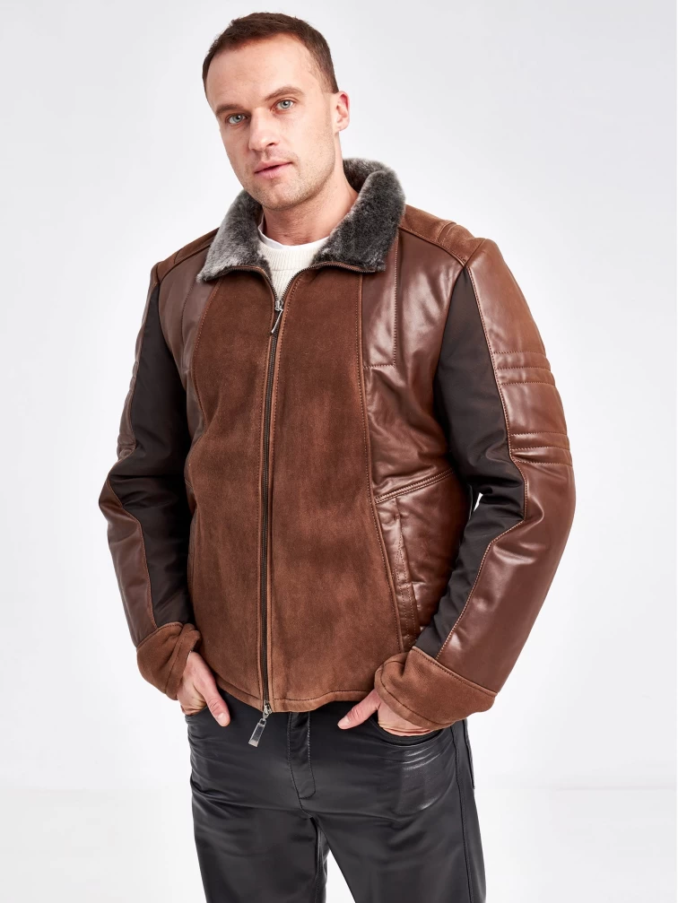 Товар комбинированная короткая мужская дубленка 40072, коричневый, размер 50, артикул 71230 выполнен из овчина "мерино" с застежкой молния. Рассчитан на сезон: зима. Длина изделия 65 см, силуэт прямой.
