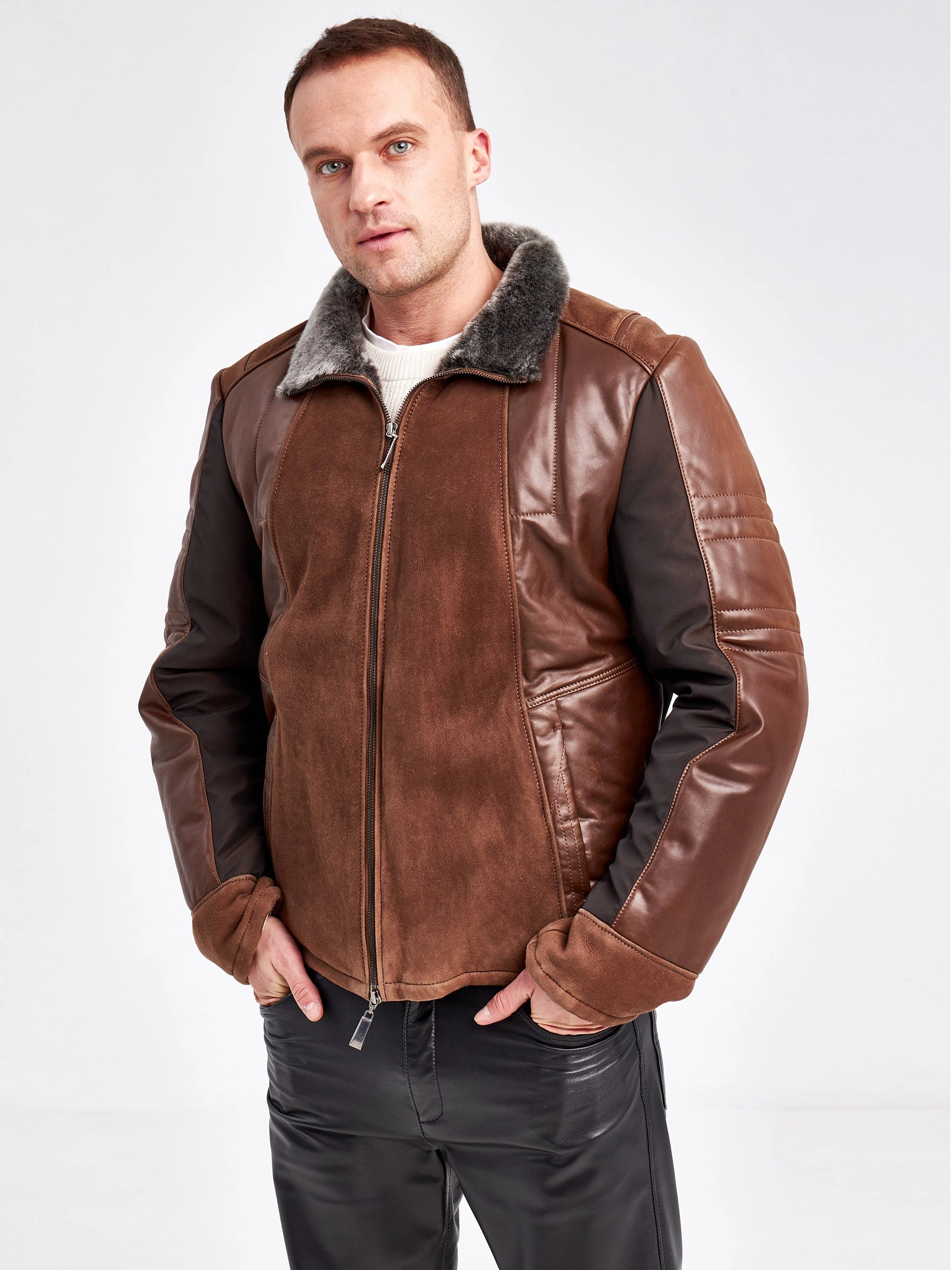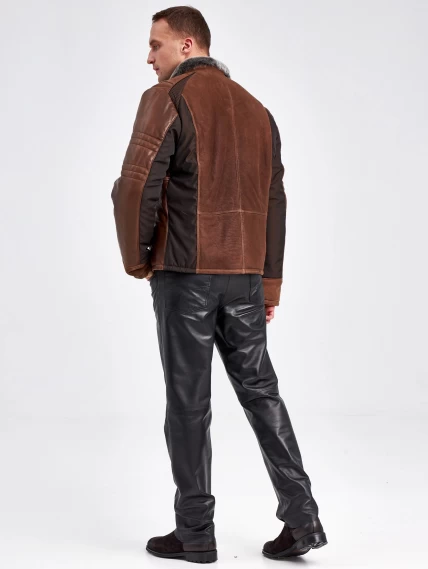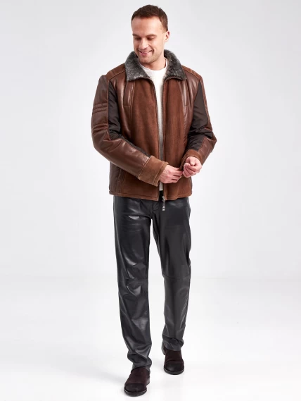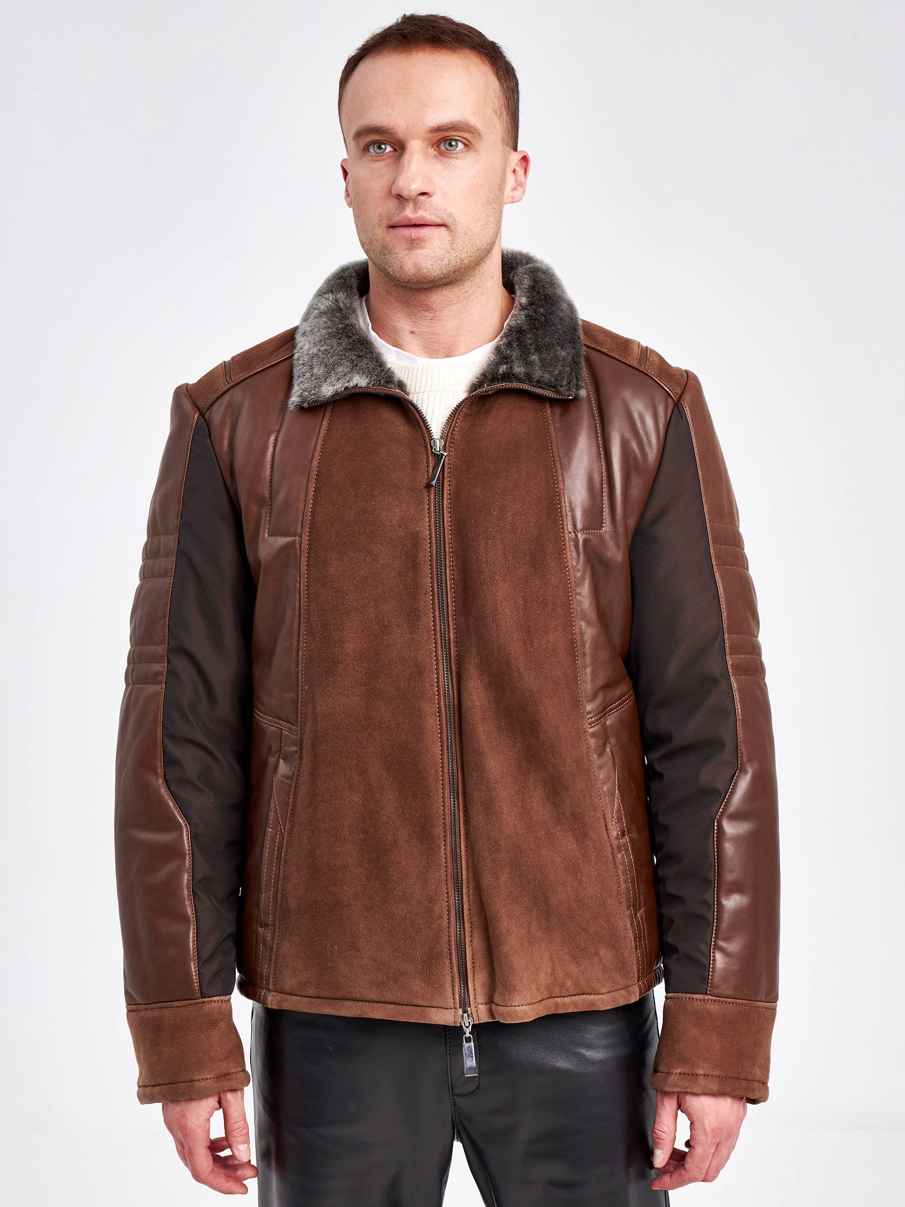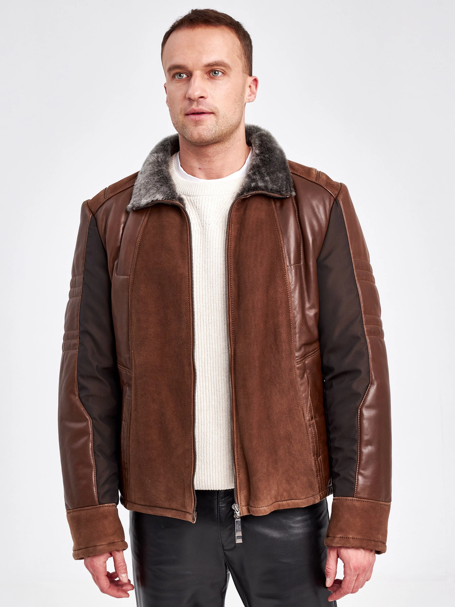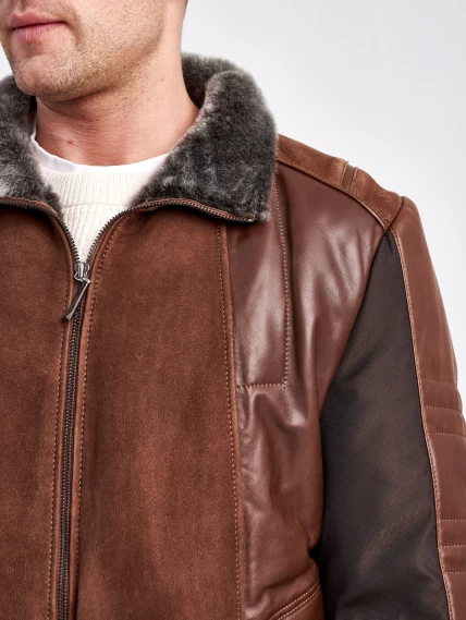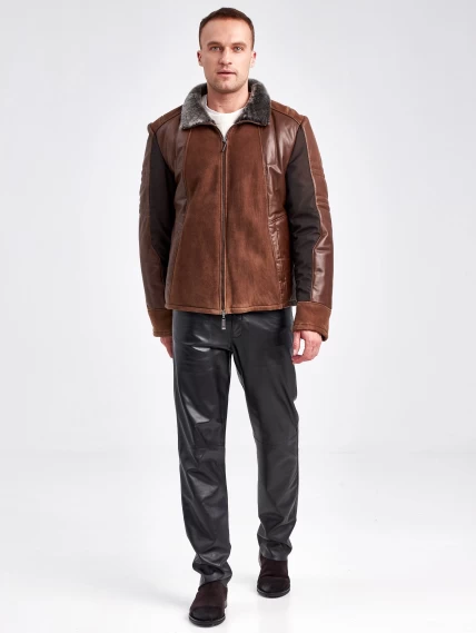 Комбинированная короткая мужская дубленка 40072, коричневый, размер 50, артикул 71230