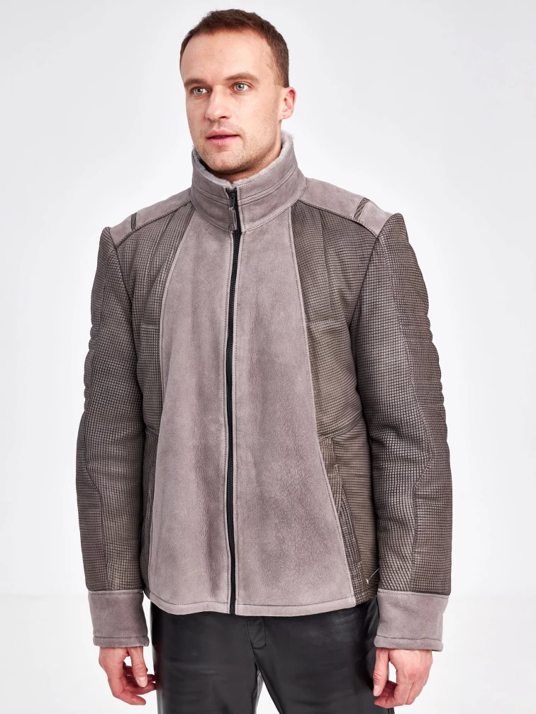 Товар комбинированная короткая мужская дубленка 40072, серая, короткая, размер 50, артикул 71240 выполнен из овчина "мерино" с застежкой молния. Рассчитан на сезон: зима. Длина изделия 65 см, силуэт прямой.