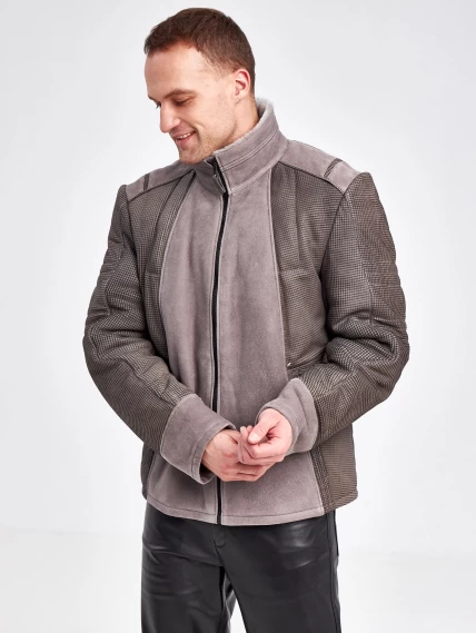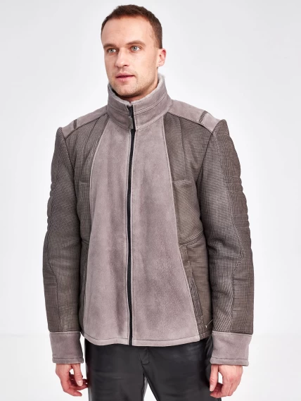 Комбинированная короткая мужская дубленка 40072, серая, короткая, размер 50, артикул 71240
