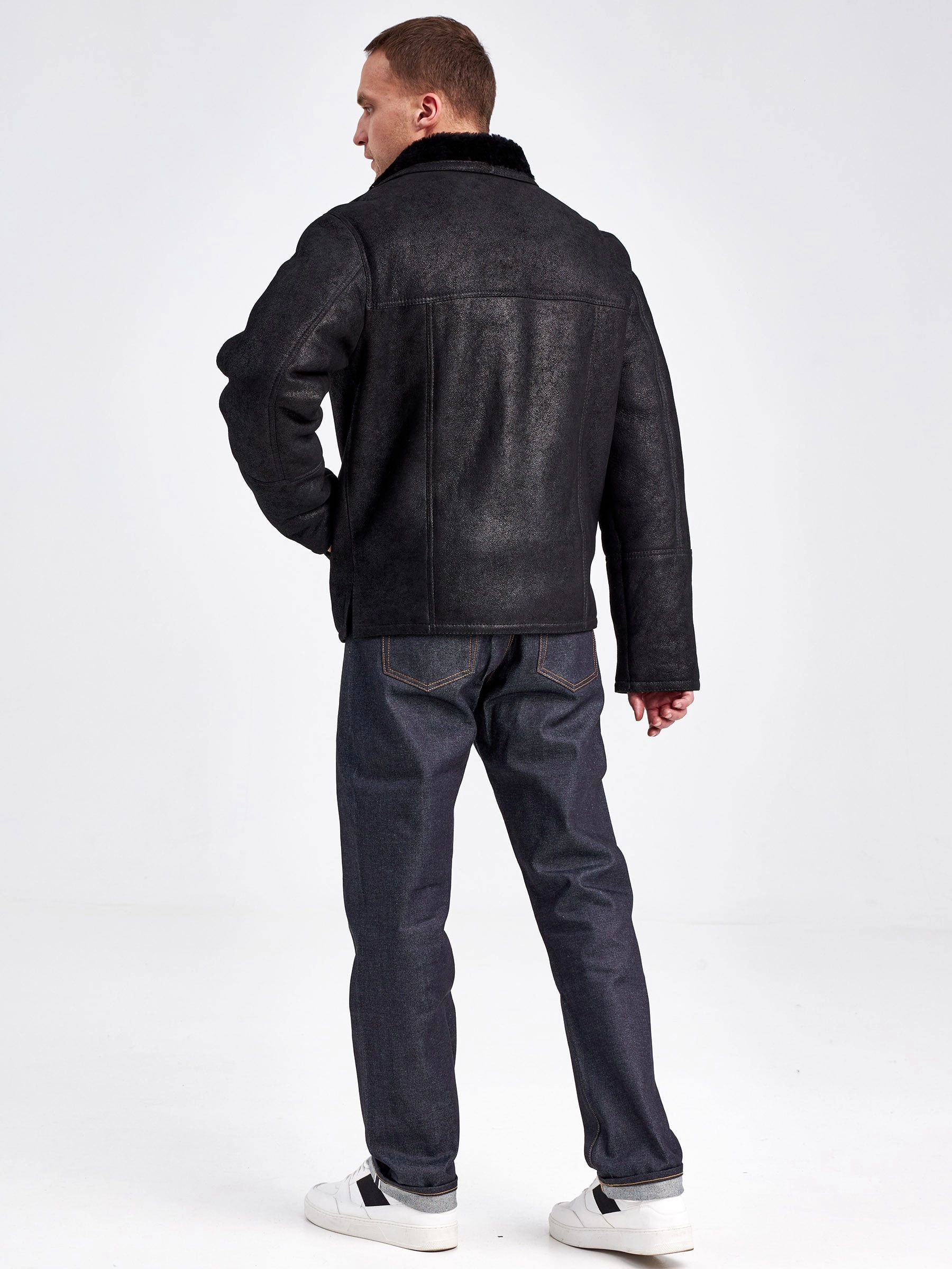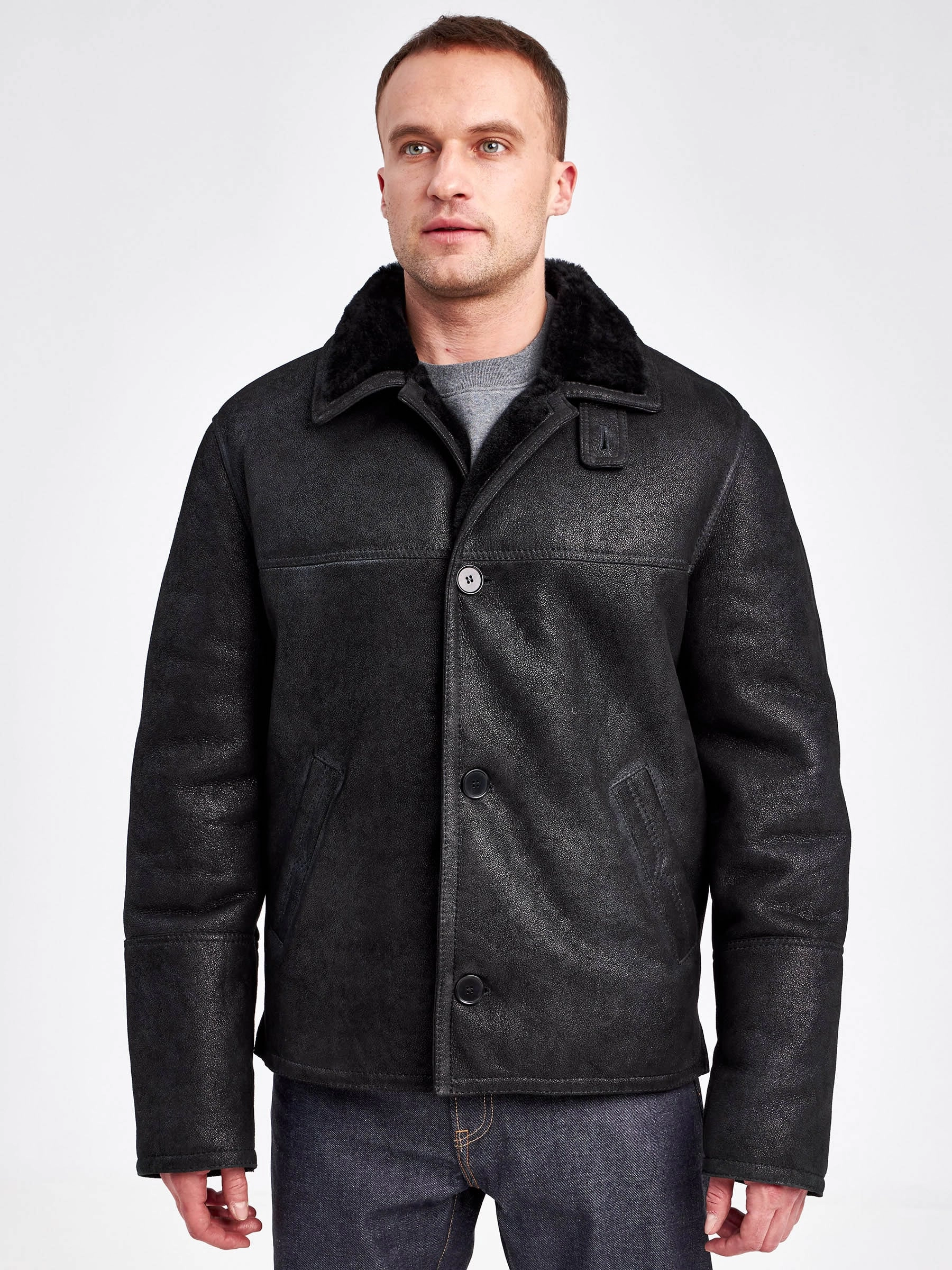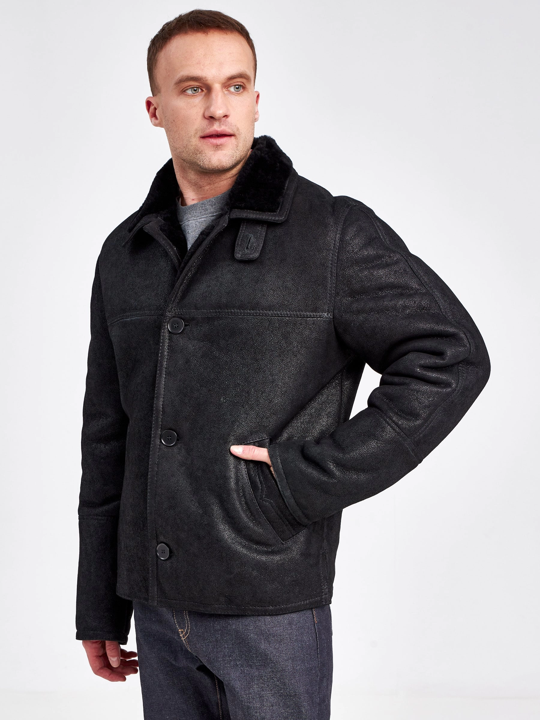Дубленка мужская 2355, короткая, черная, размер 48, артикул 71190