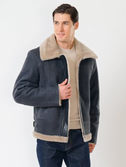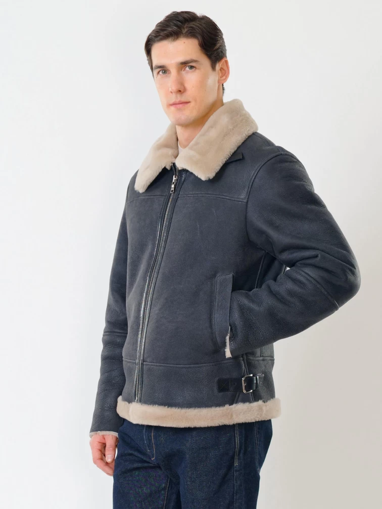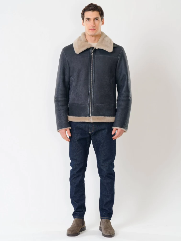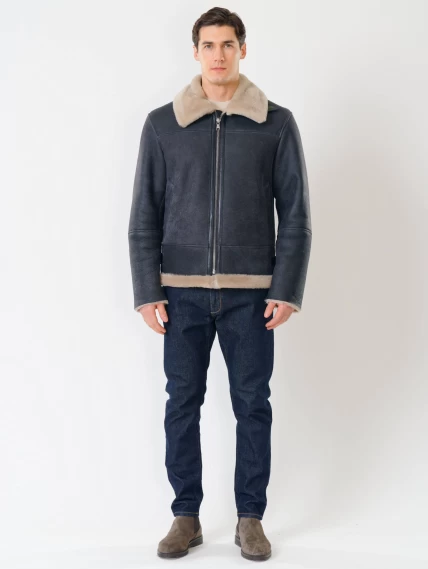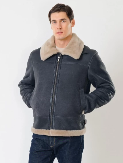 Короткая мужская дубленка пилот 427, синяя, размер 48, артикул 70531