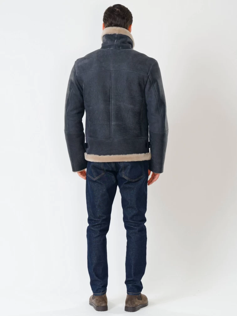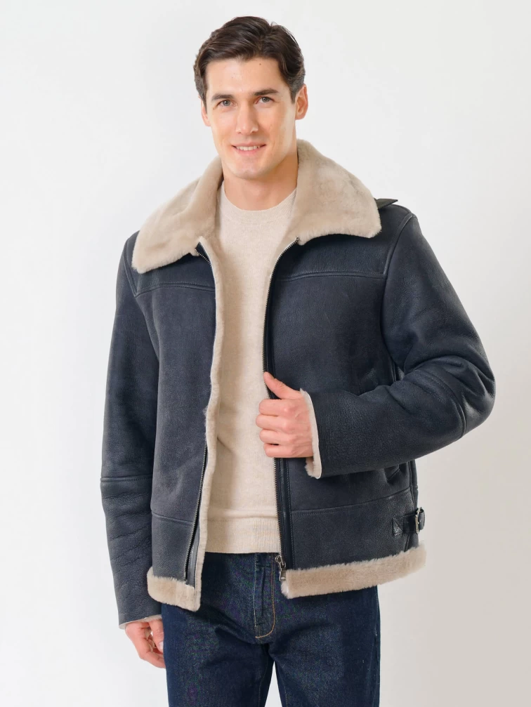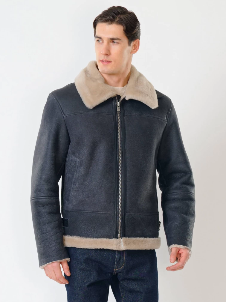 Товар короткая мужская дубленка пилот 427, синяя, размер 48, артикул 70531 выполнен из овчина "мерино" с застежкой молния. Рассчитан на сезон: осень-зима. Длина изделия 70 см, силуэт прямой.