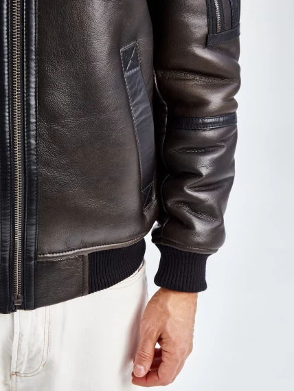 Короткая мужская дубленка бомбер премиум класса 428, оливковая, размер 48, артикул 70661