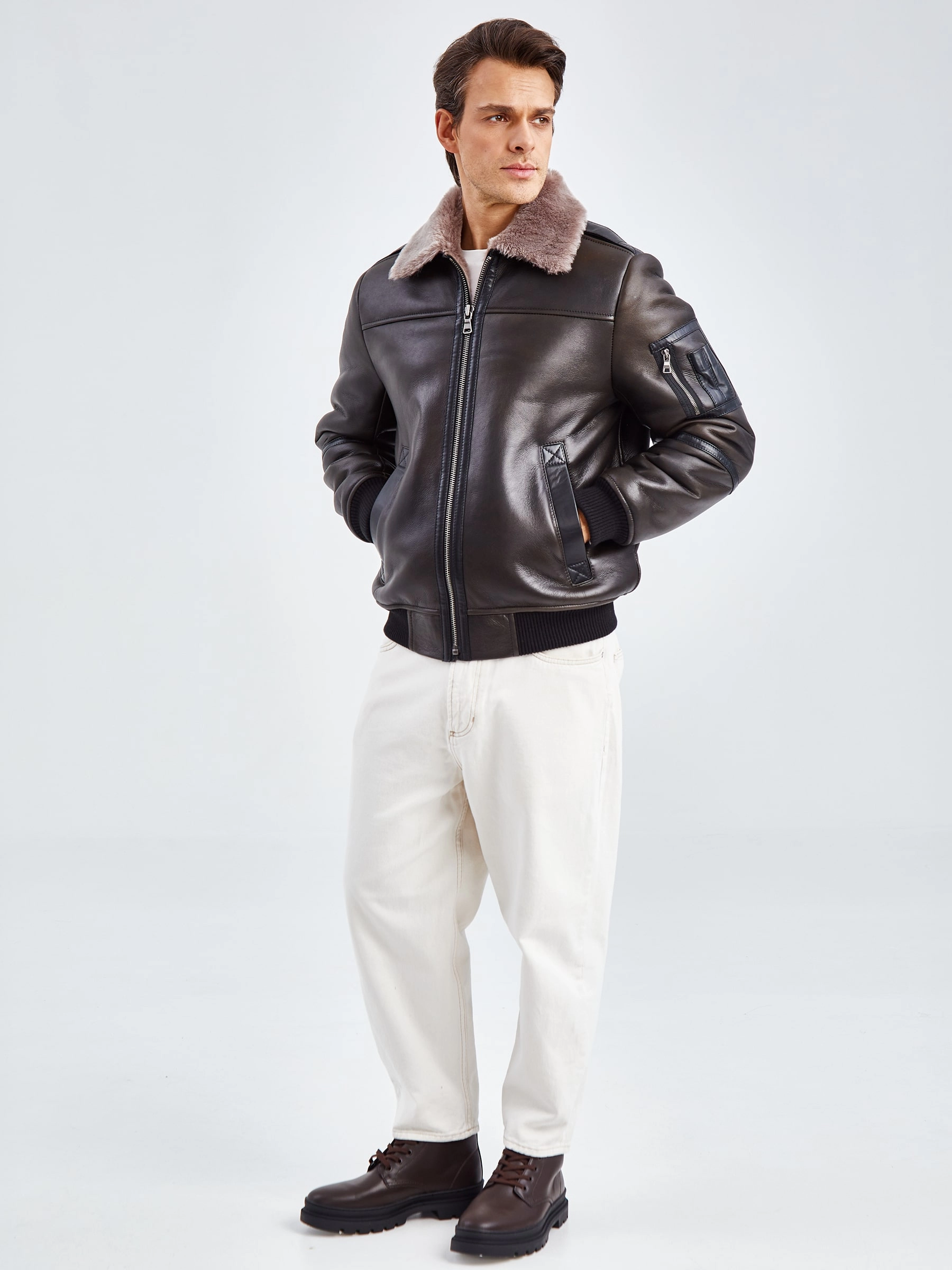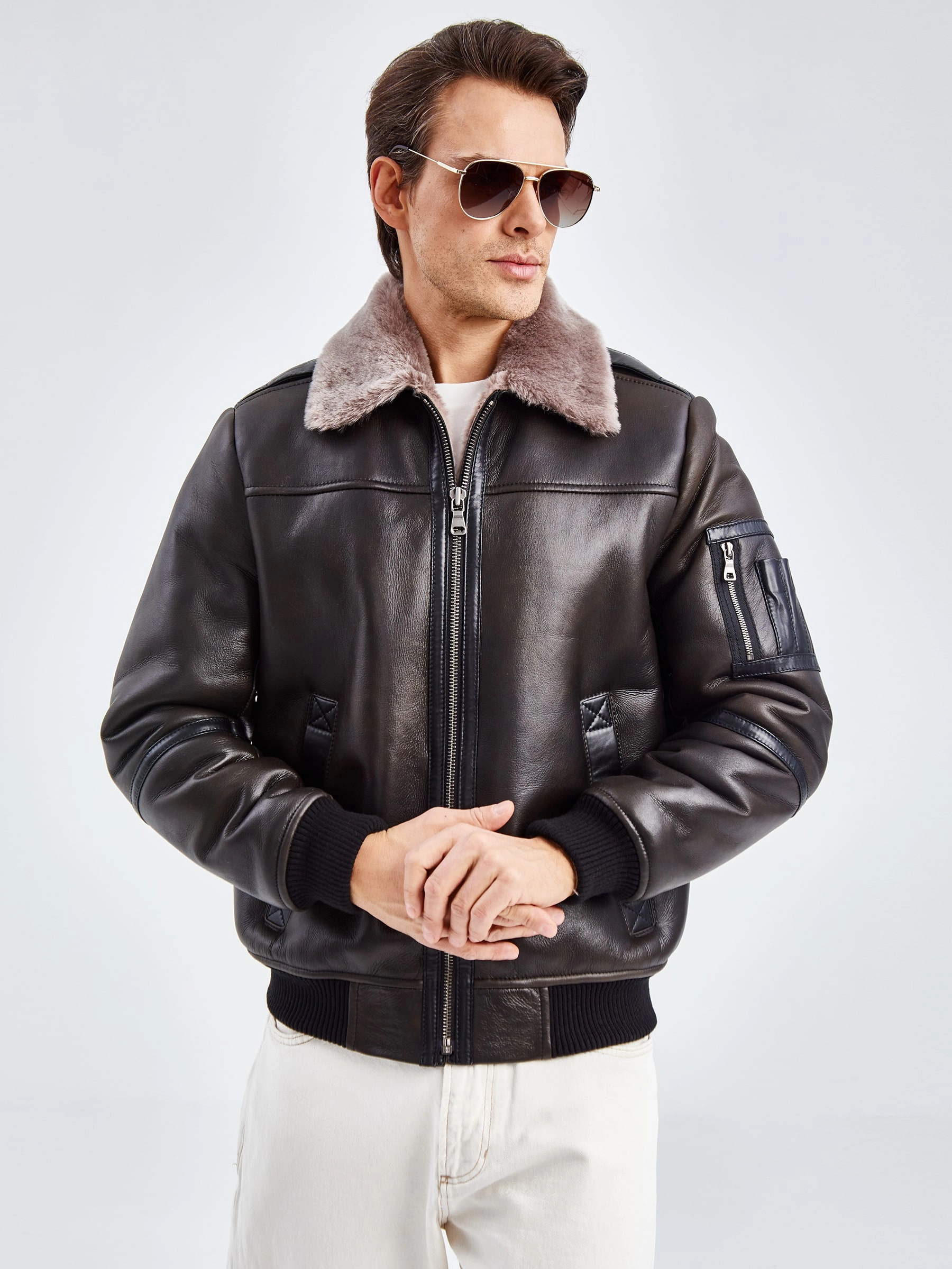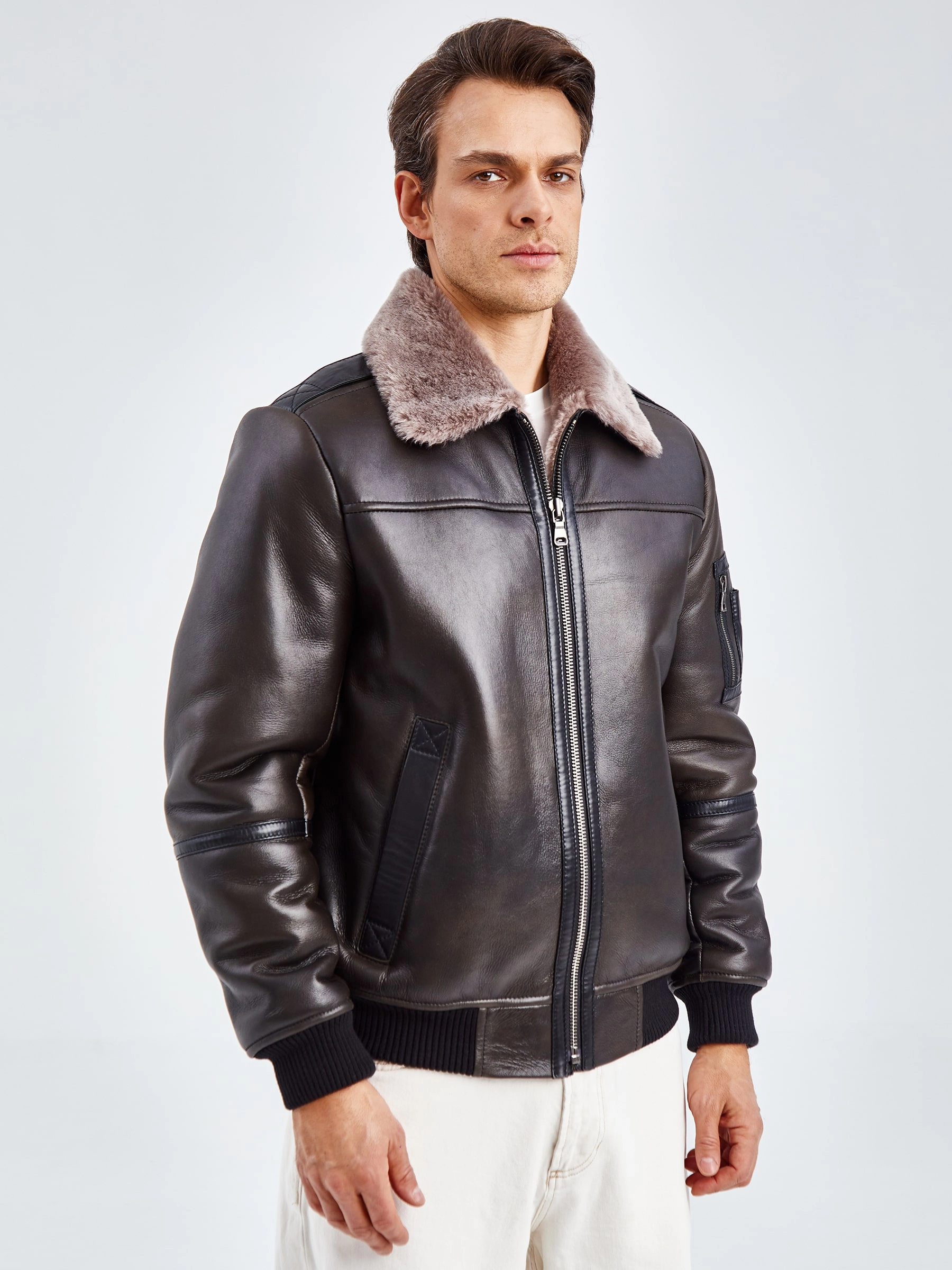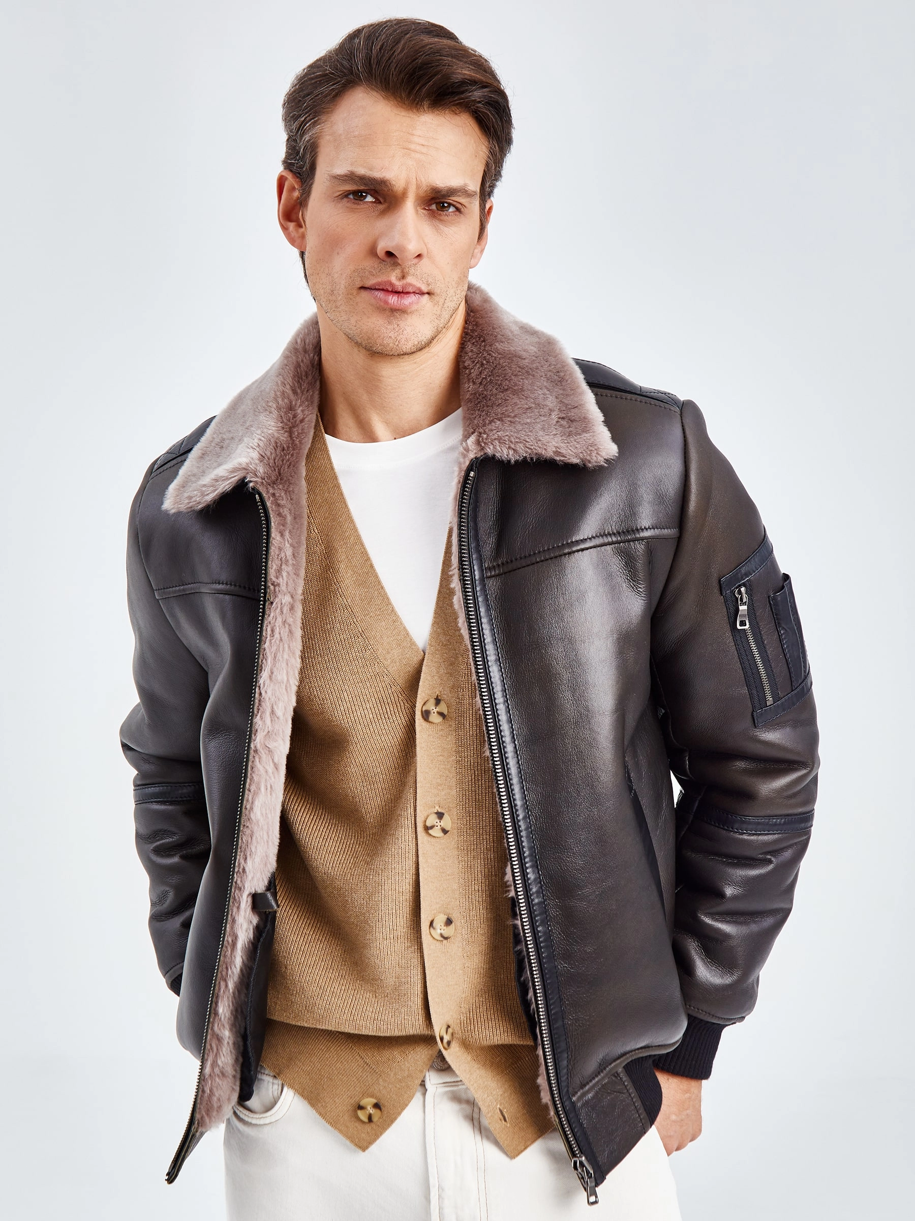 Дублёнка-авиатор. Специальная технология стирки овчины придает поверхности дублёнки повышенную износостойкость. Максимально густой мех. Минимальный вес. Предусмотрены внутренние карманы для документов. Безупречная работа наших портных. Комфортная посадка по фигуре. Великолепная свобода движений.