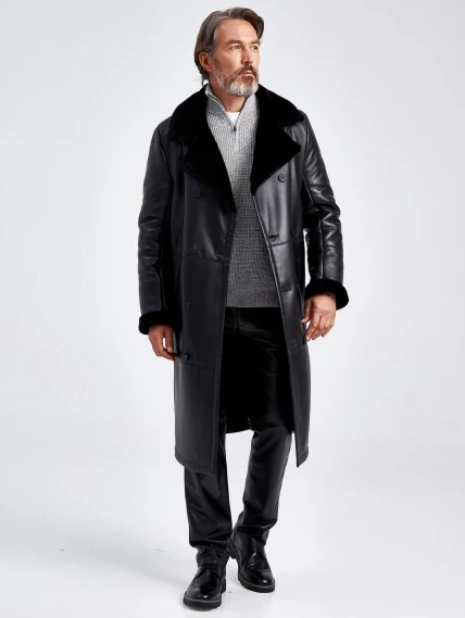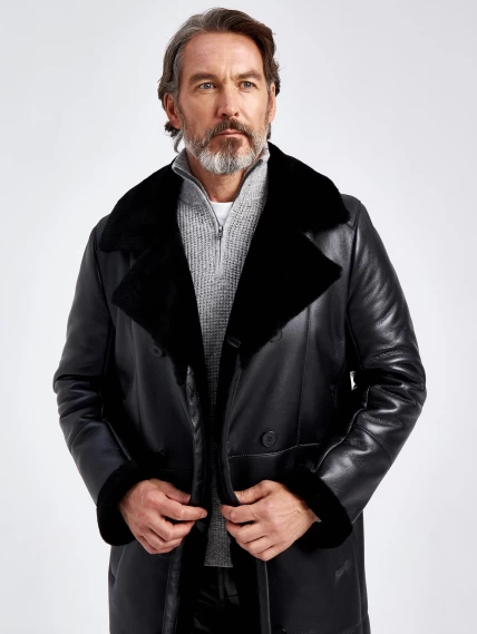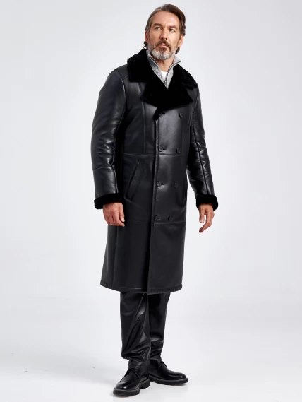 Длинная двубортная мужская дубленка премиум класса 432, черная, размер 50, артикул 70630