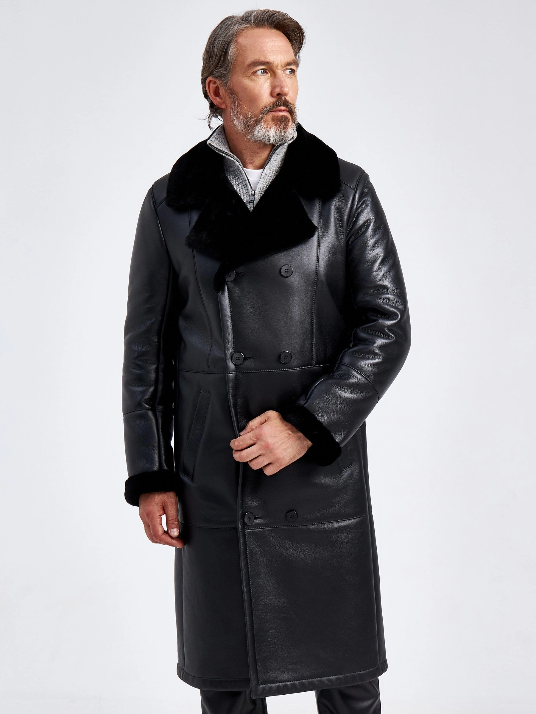 Товар длинная двубортная мужская дубленка премиум класса 432, черная, размер 50, артикул 70630 выполнен из овчина "мерино" с застежкой пуговицы. Рассчитан на сезон: осень-зима. Длина изделия 114 см, силуэт прямой.