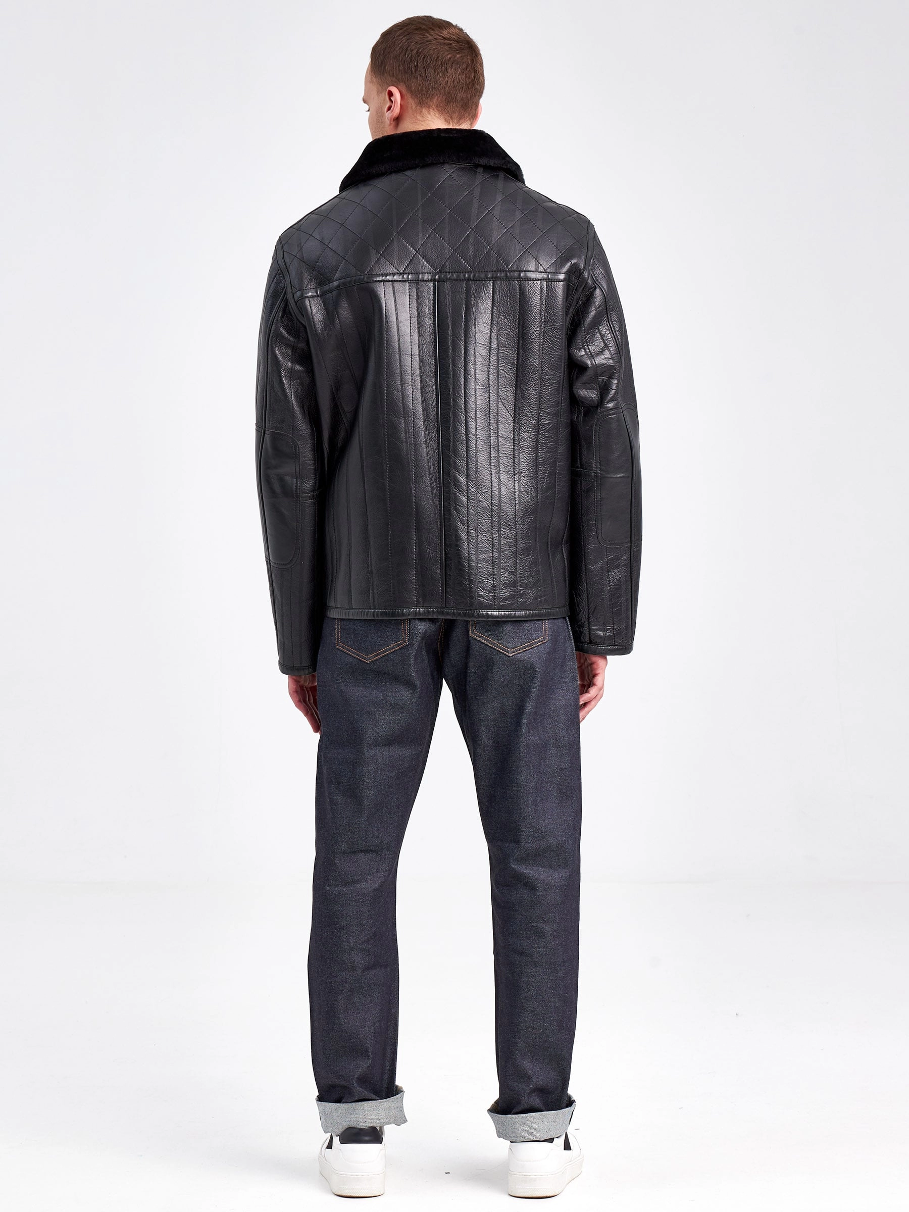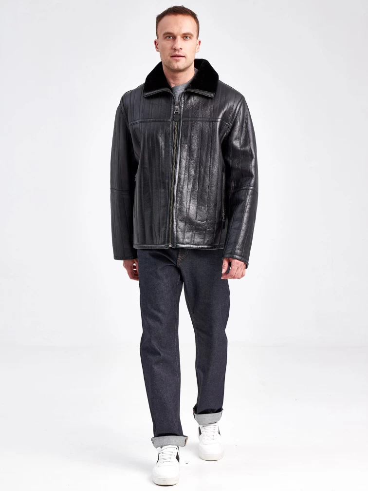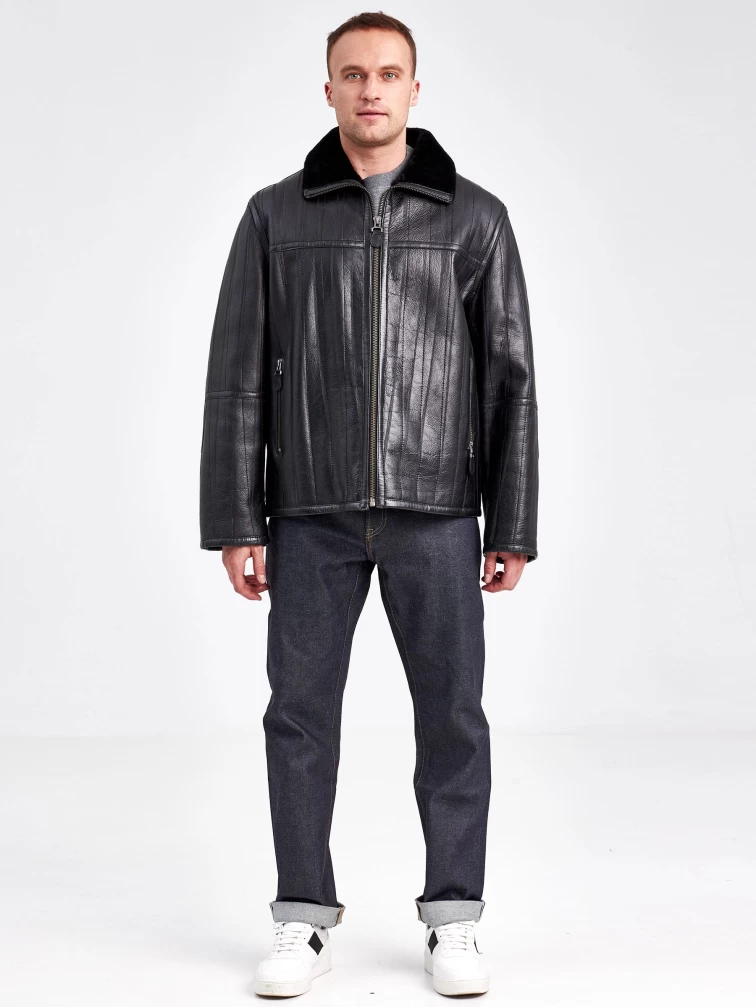 Дубленка мужская 97105, короткая, черная, размер 58, артикул 71220
