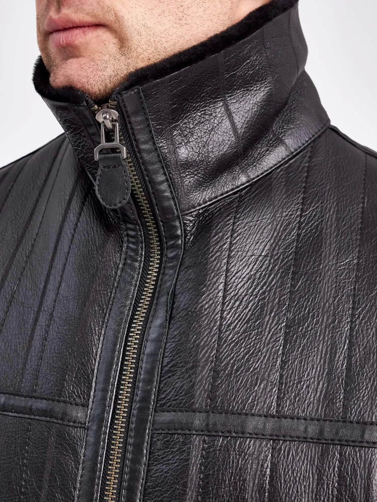 Товар дубленка мужская 97105, короткая, черная, размер 58, артикул 71220 выполнен из овчина "мерино" с застежкой молния. Рассчитан на сезон: зима. Длина изделия 65 см, силуэт прямой.