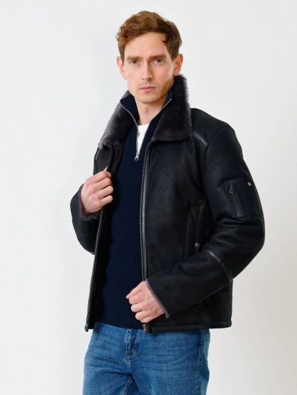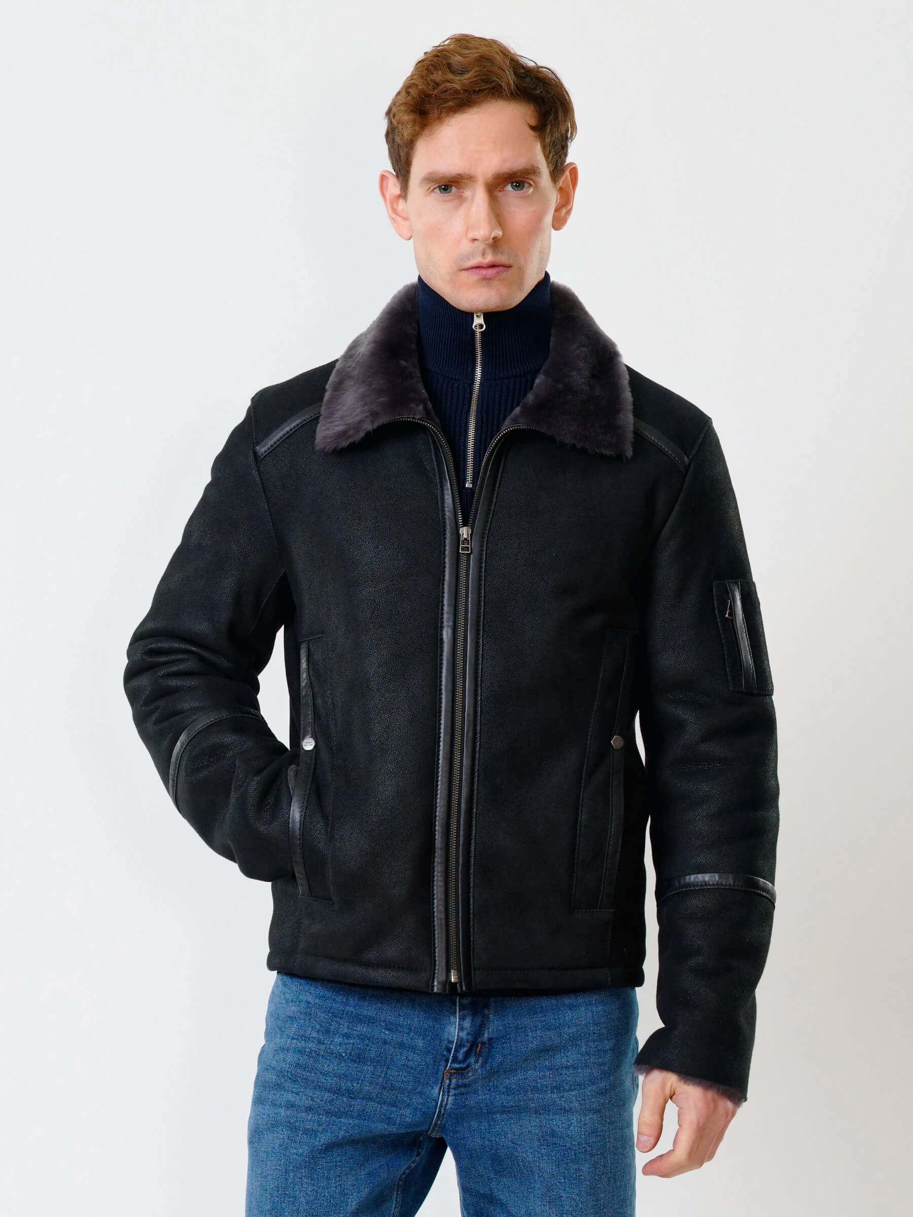 Короткая мужская дубленка Мюнхен, черная, размер 44, артикул 70270
