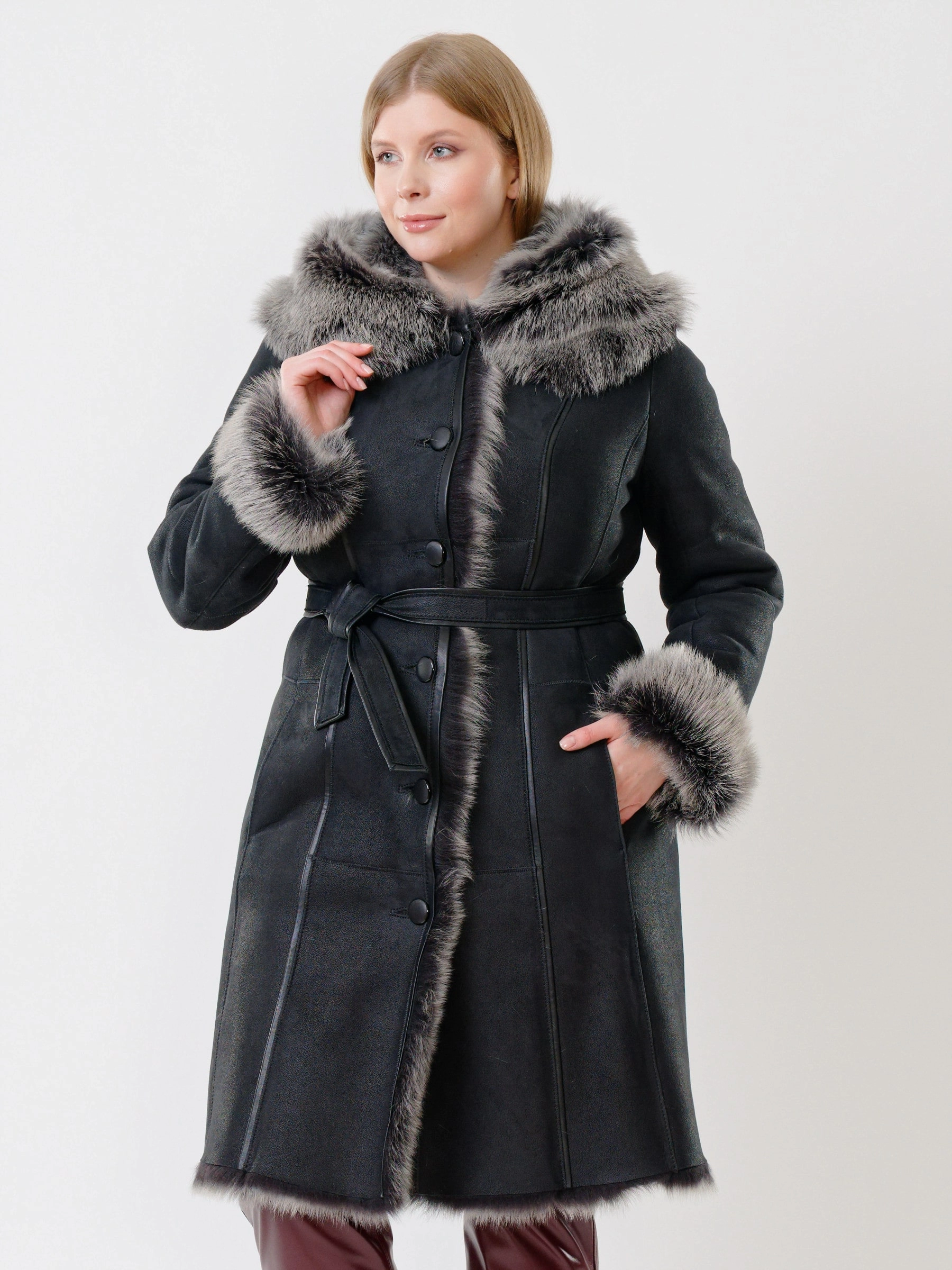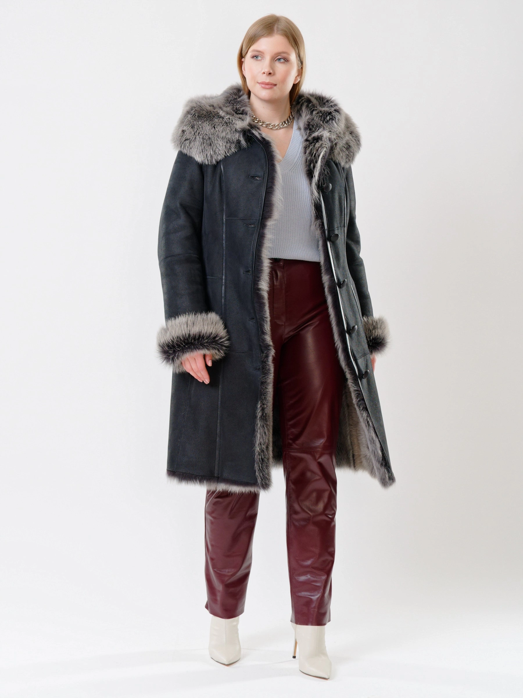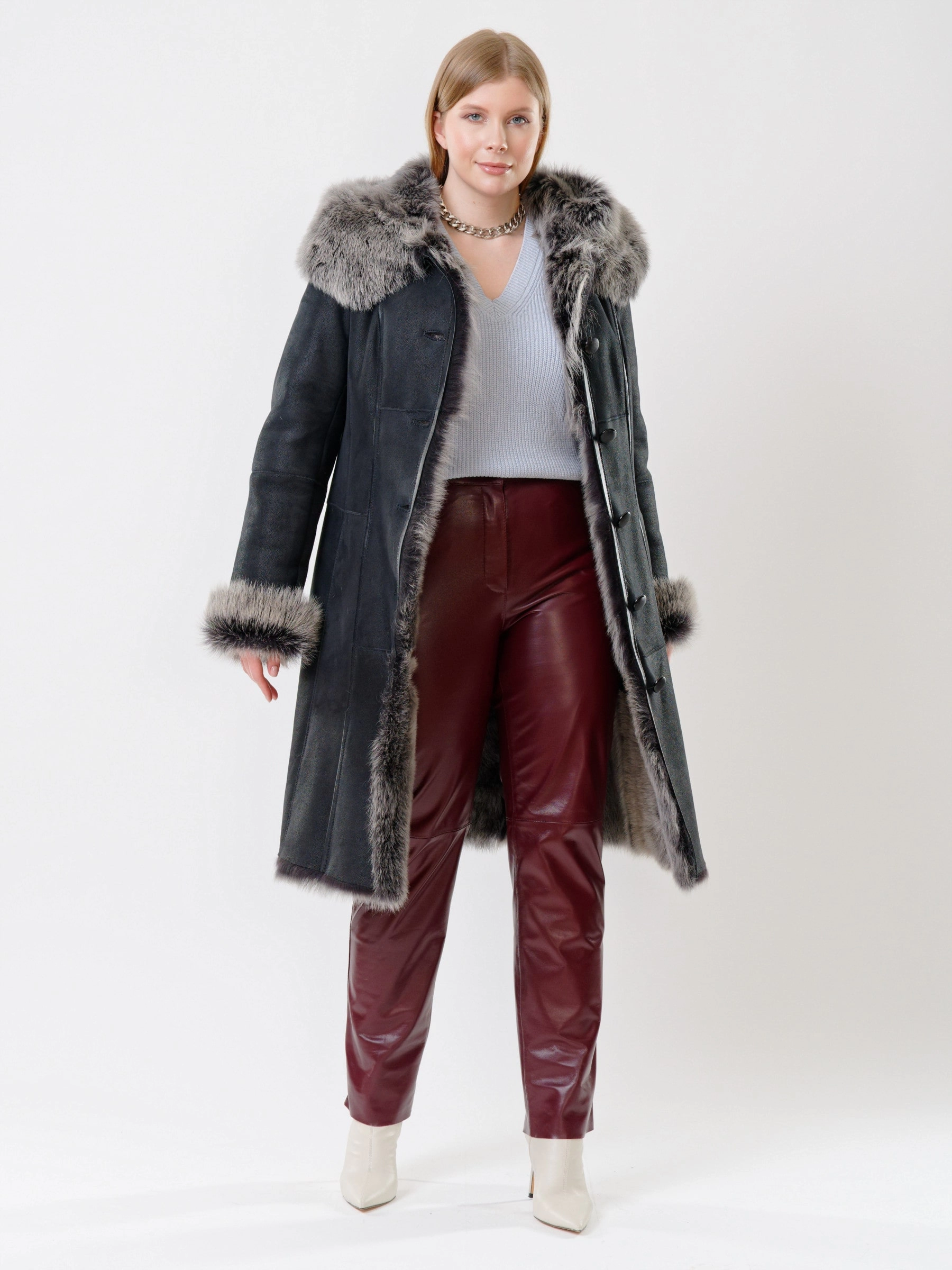 Зимний комплект женский: Дубленка 123НК + Брюки 02, черный/бордовый, р. 42, арт. 111250