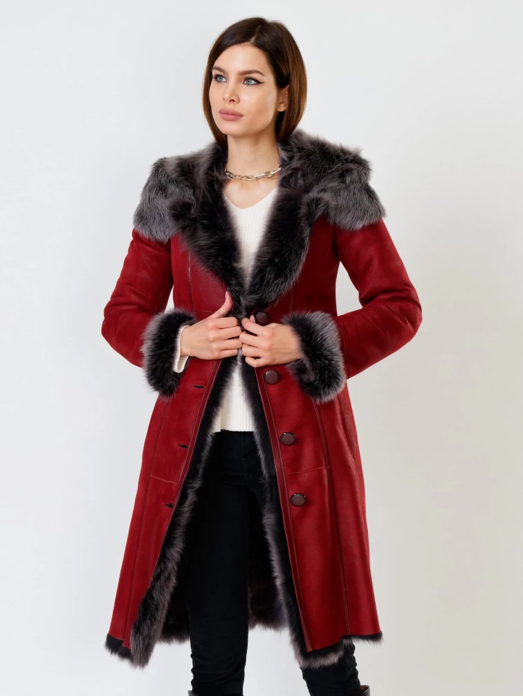 Длинная дублёнка с капюшоном из тосканской овчины. Роскошная полуприлегающая модель премиум-класса: густой нежнейший мех глубокого оттенк подарит королевское тепло даже в лютый мороз, а объёмный капюшон создаст уютный кокон от непогоды или элегантно ниспадет на плечи. Защитное покрытие убережёт от царапин, а идеальная посадка по фигуре, боковые карманы и длинный пояс подчеркнут силуэт — сочетайте с чёрными джинсами, вязаными платьями или кожаными брюками для безупречного зимнего образа! Преимущество: короткая длина, полуприлегающий крой - это мобильность для города и элегантность для вечера.