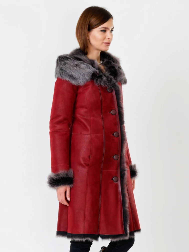 Товар длинная женская дубленка из тосканы с капюшоном 123нк, красная, размер 52, артикул 61911 выполнен из овчина "тоскана" с застежкой пуговицы. Рассчитан на сезон: осень-зима. Длина изделия 101 см, силуэт полуприлегающий.