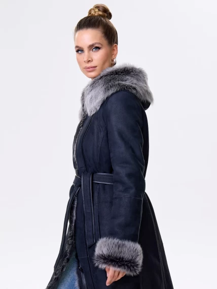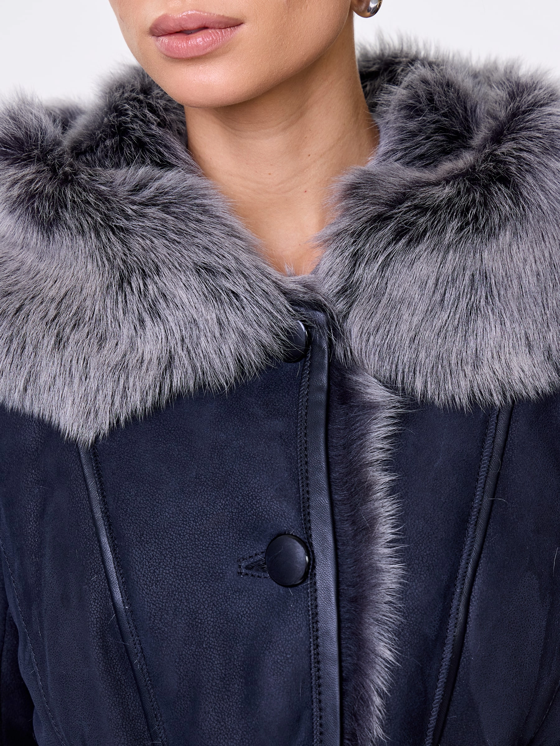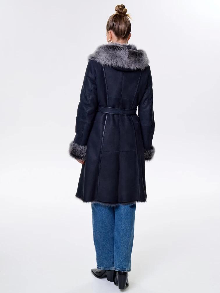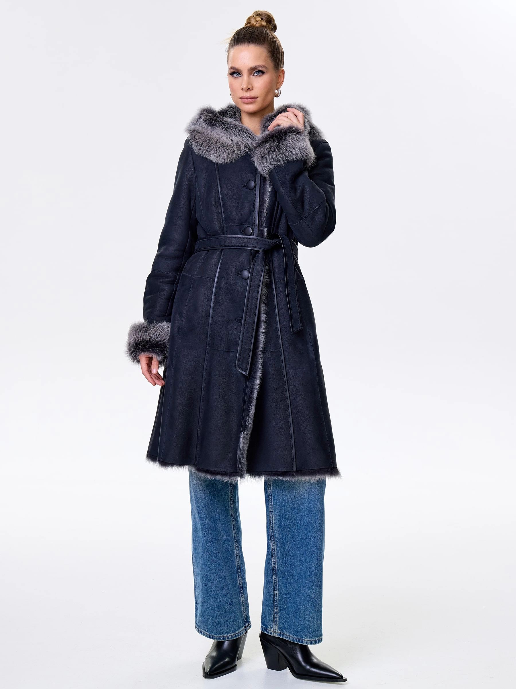Длинная дублёнка с капюшоном из тосканской овчины. Роскошная полуприлегающая модель премиум-класса: густой нежнейший мех глубокого оттенк подарит королевское тепло даже в лютый мороз, а объёмный капюшон создаст уютный кокон от непогоды или элегантно ниспадет на плечи. Защитное покрытие убережёт от царапин, а идеальная посадка по фигуре, боковые карманы и длинный пояс подчеркнут силуэт — сочетайте с чёрными джинсами, вязаными платьями или кожаными брюками для безупречного зимнего образа! Преимущество: короткая длина, полуприлегающий крой - это мобильность для города и элегантность для вечера.