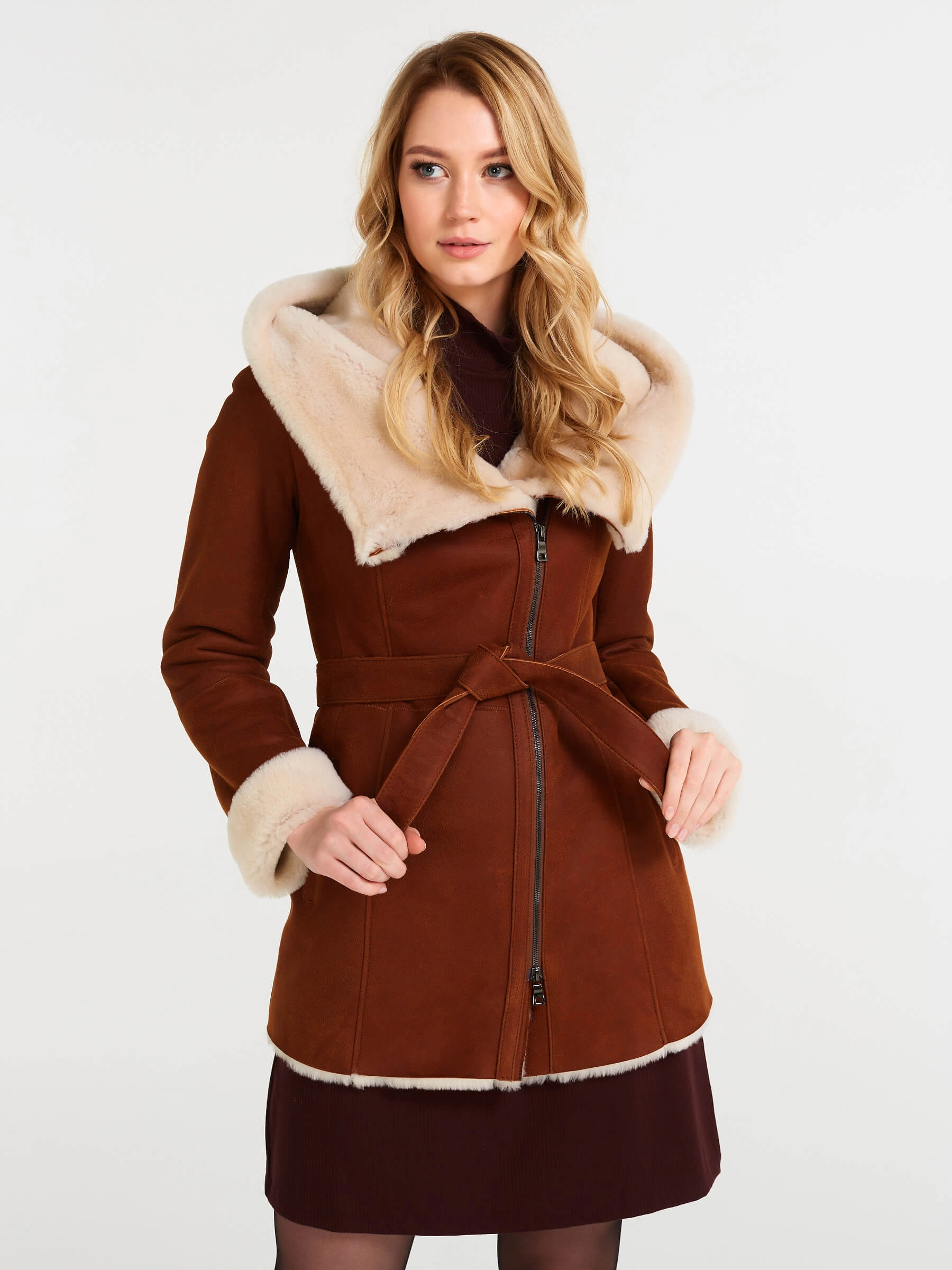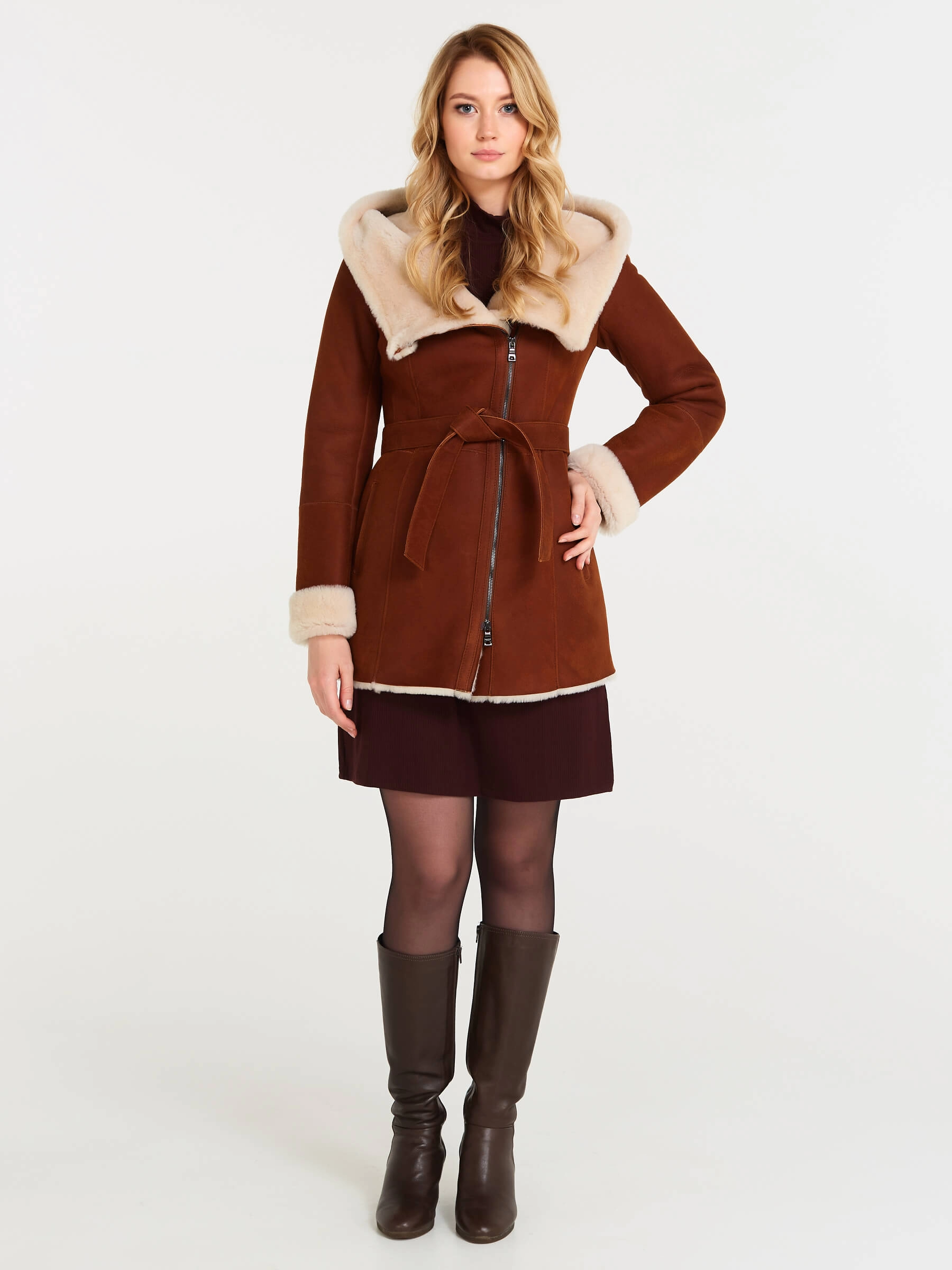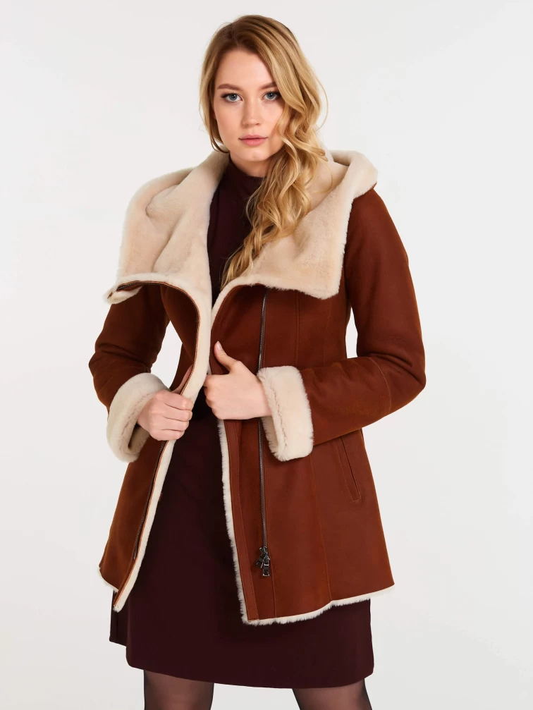 Дубленка-косуха. Удобный объёмный капюшон. Нежнейшая мериносная овчина с максимально густым мехом согреет в любой мороз. Устойчивое защитное покрытие. Абсолютный комфорт. Премиальное качество.