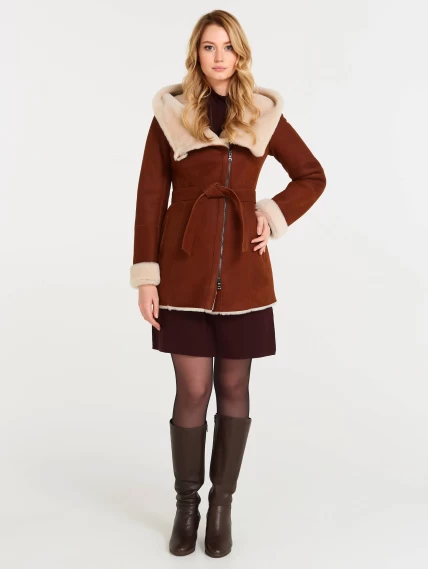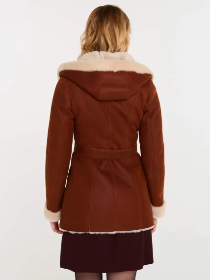 Короткая женская дубленка косуха с капюшоном 200, табачно-рыжая, размер 44, артикул 61250