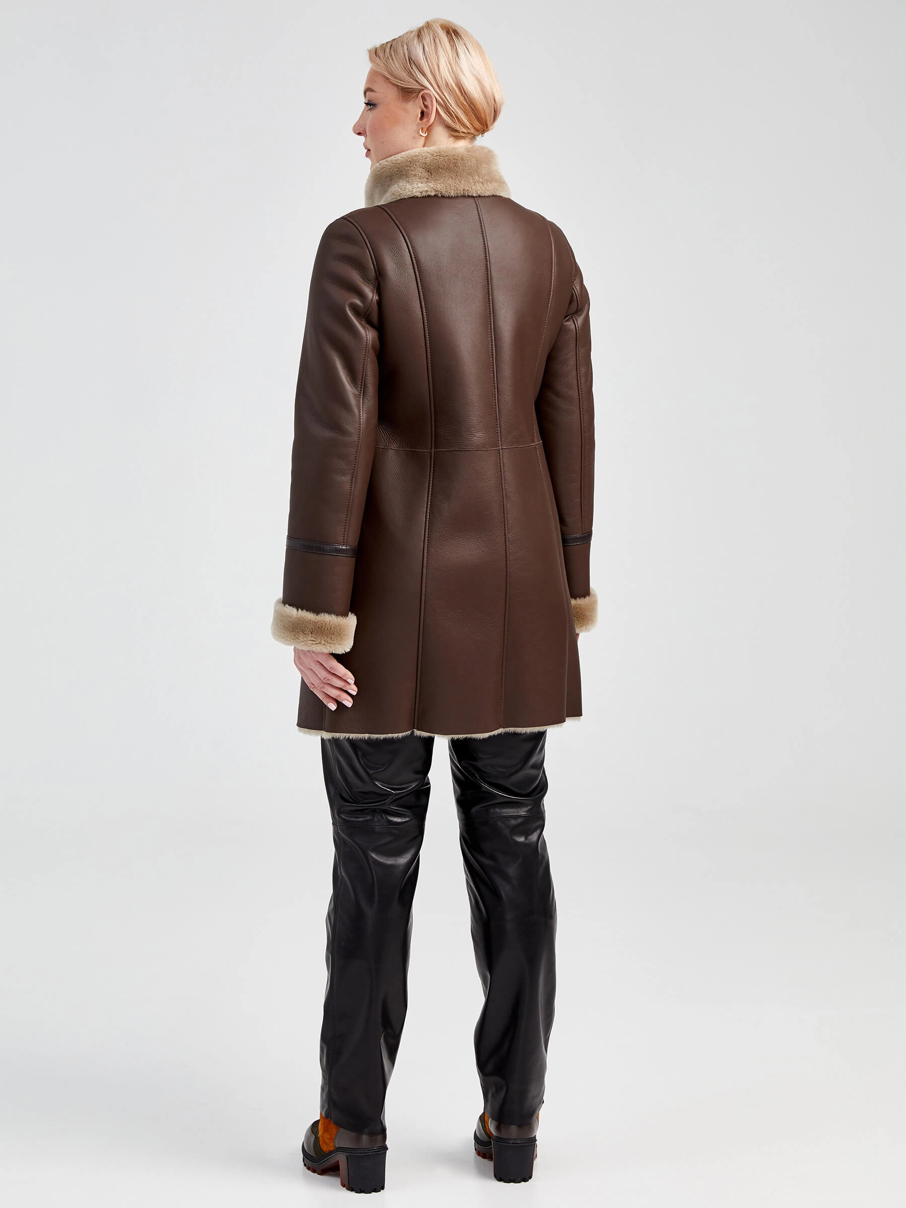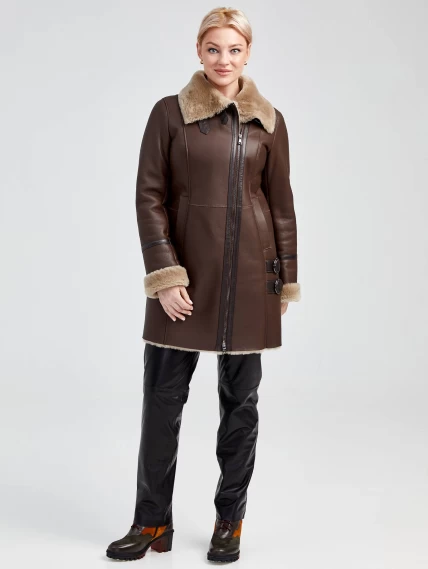Дубленка косуха женская 206, коричневая, размер 48, артикул 62501
