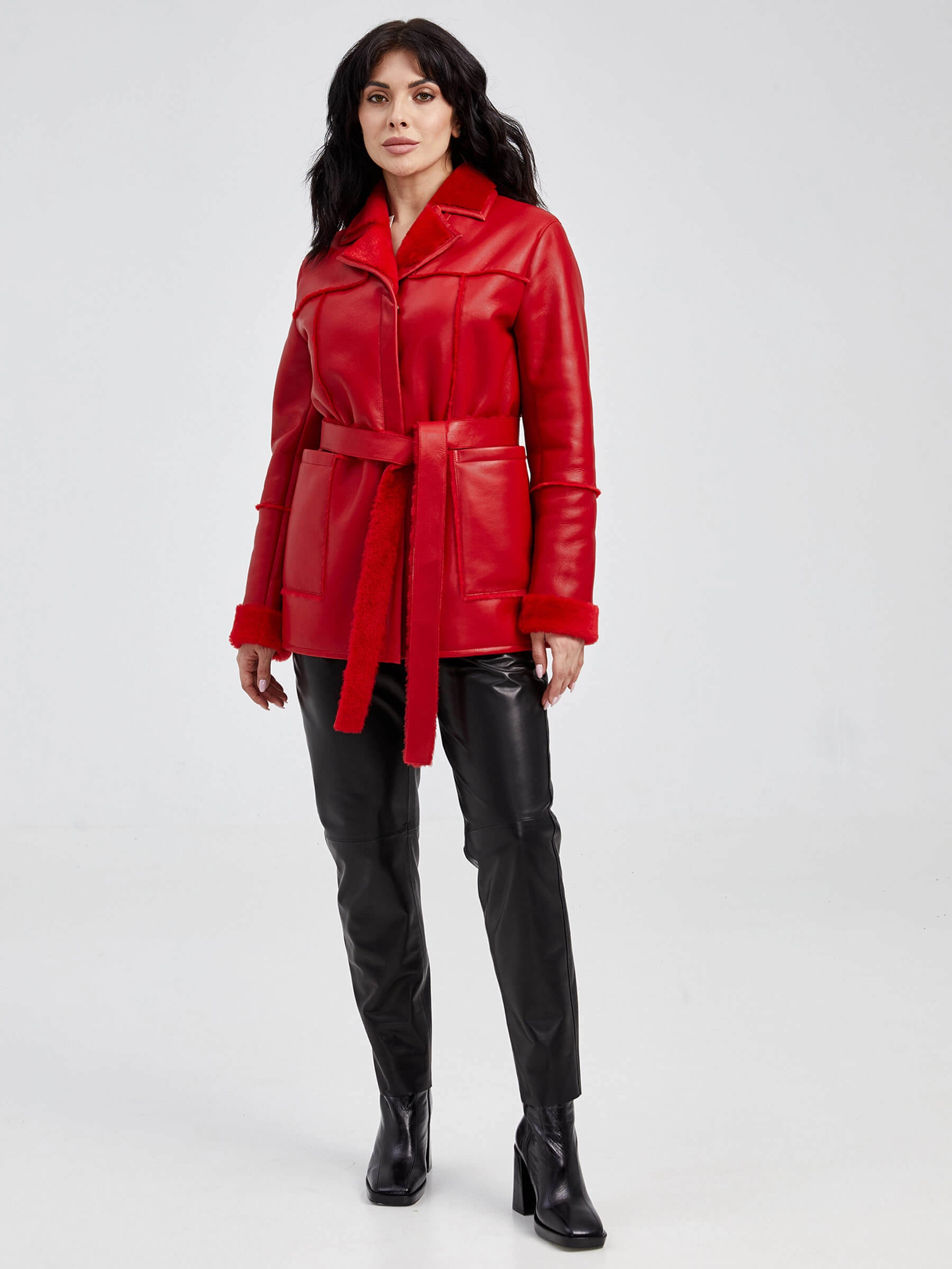 Товар женская короткая дубленка с поясом премиум класса 207, красная, размер 48, артикул 62520 выполнен из овчина "мерино" с застежкой кнопки. Рассчитан на сезон: осень-зима. Длина изделия 75 см, силуэт прямой.