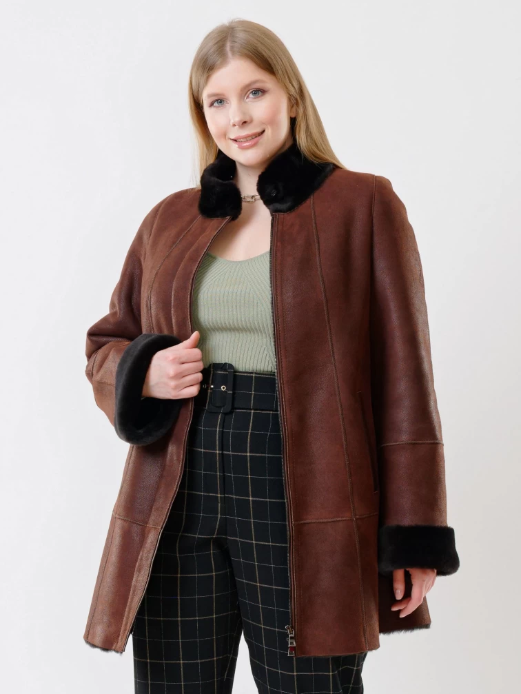 Товар женская дубленка на молнии с воротником стойкой 267, виски, размер 44, артикул 61170 выполнен из овчина "мерино" с застежкой молния. Рассчитан на сезон: осень-зима. Длина изделия 81 см, силуэт прямой.