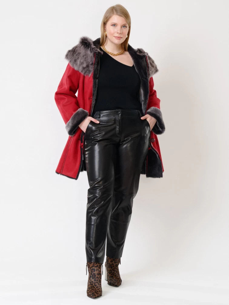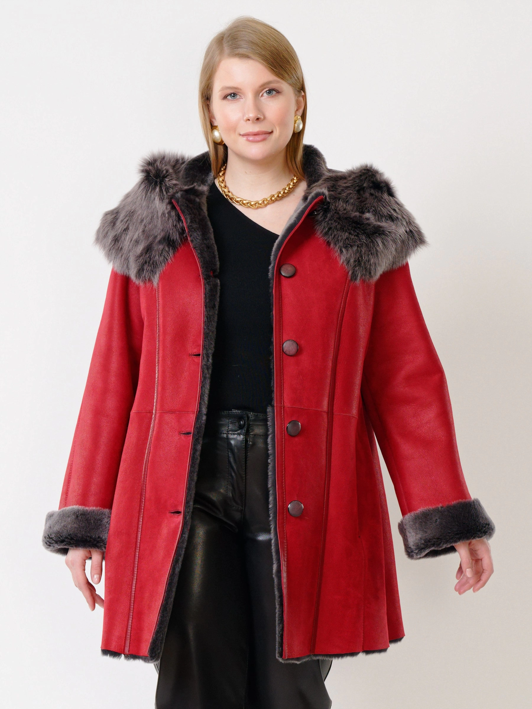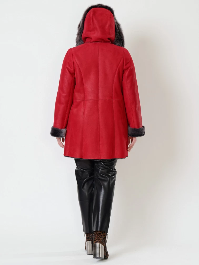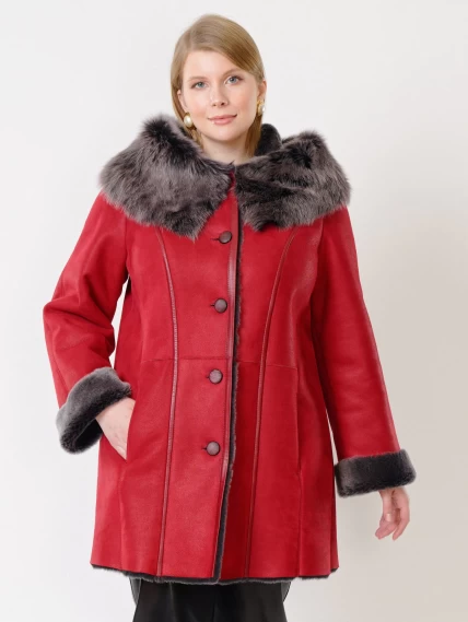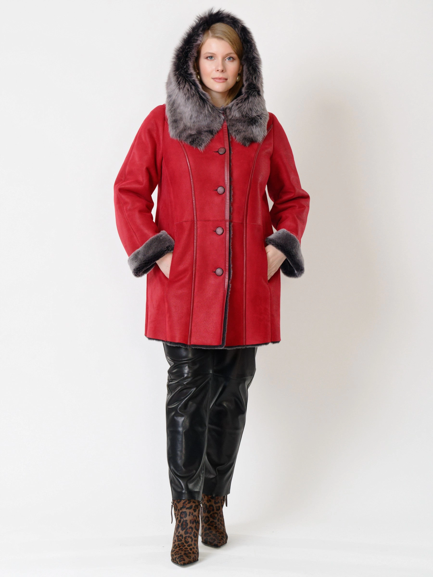 Женская дубленка с капюшоном из тосканы 270, красная, размер 52, артикул 14710