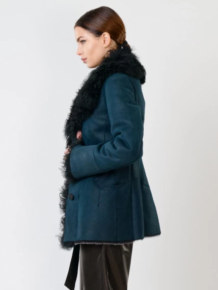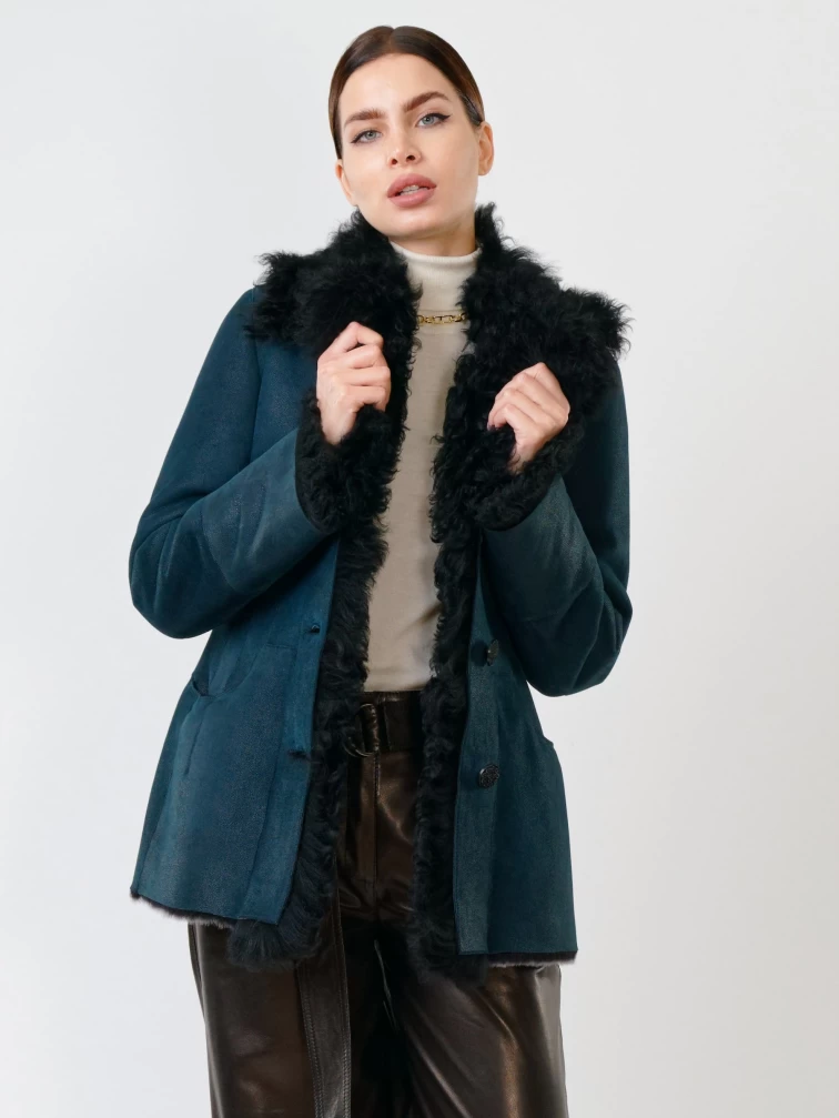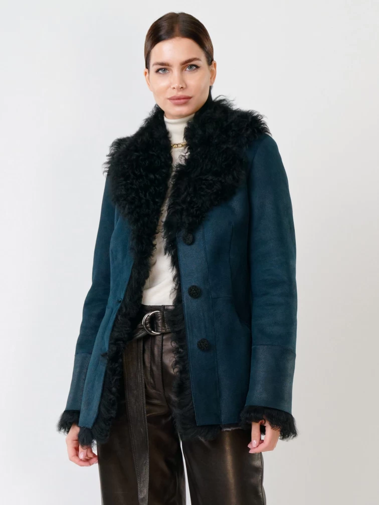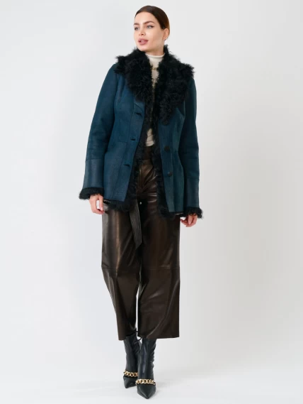 Короткая женская дубленка с овчиной тиградо 289, синяя, размер 42, артикул 61780