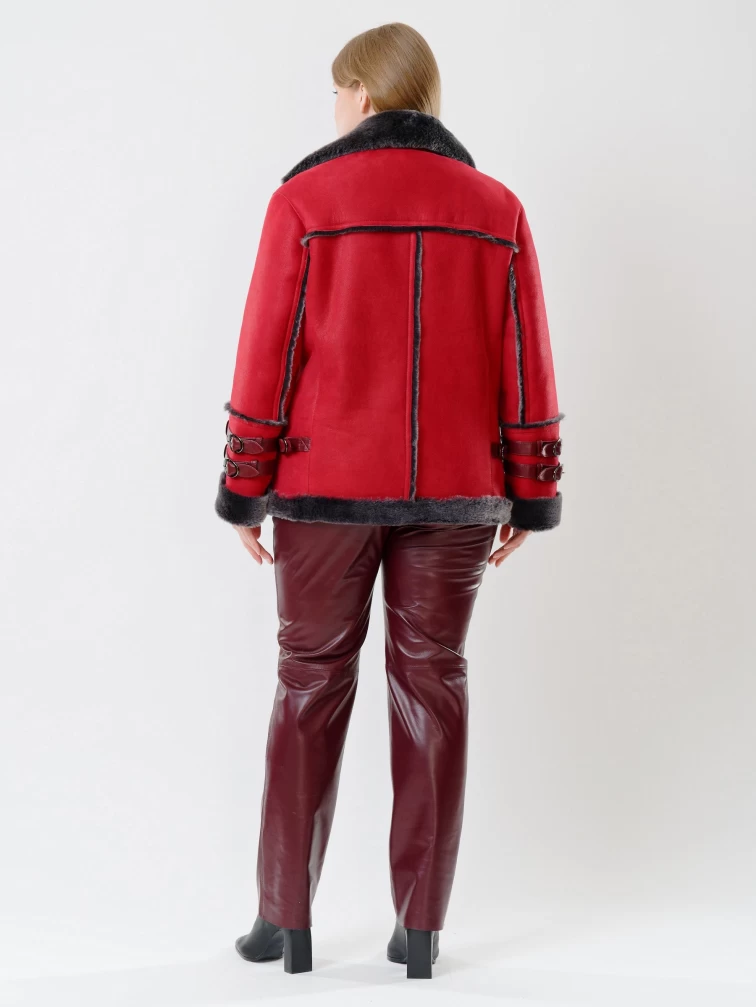 Женская короткая дубленка косуха из керли 290, красная, размер 44, артикул 61141
