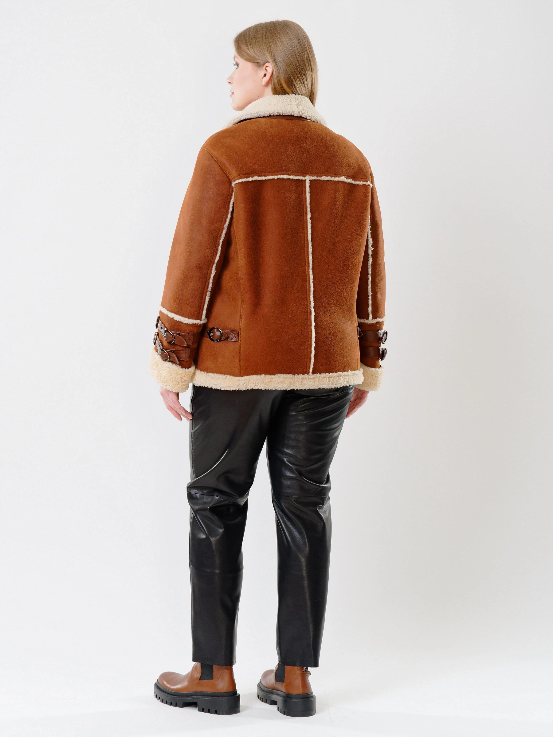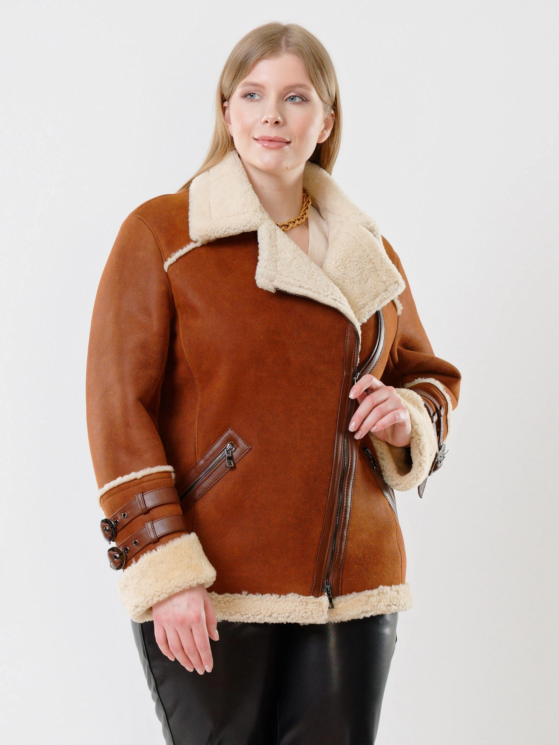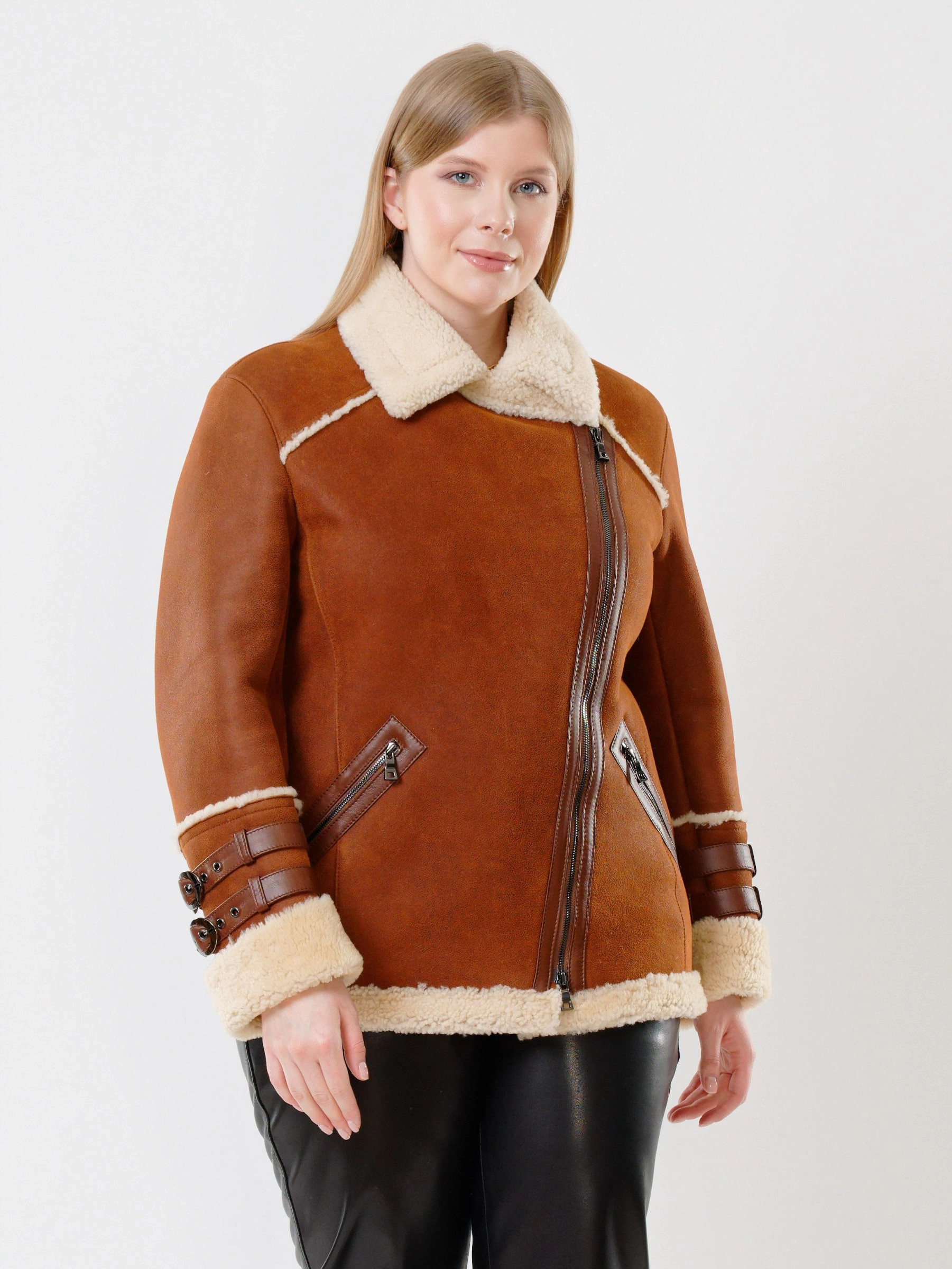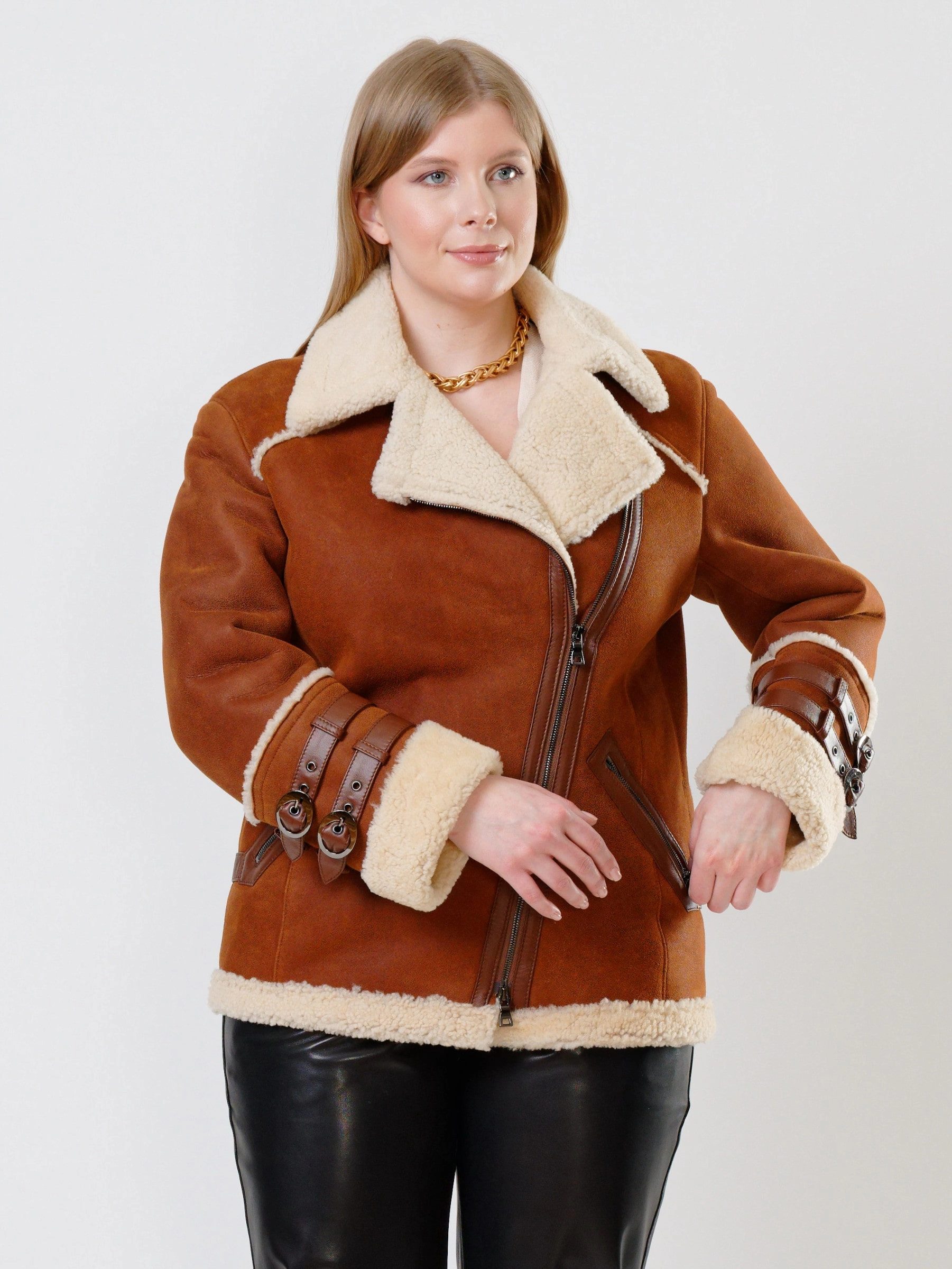 Женская короткая дубленка косуха из керли 290, табачно-рыжая, размер 44, артикул 62171
