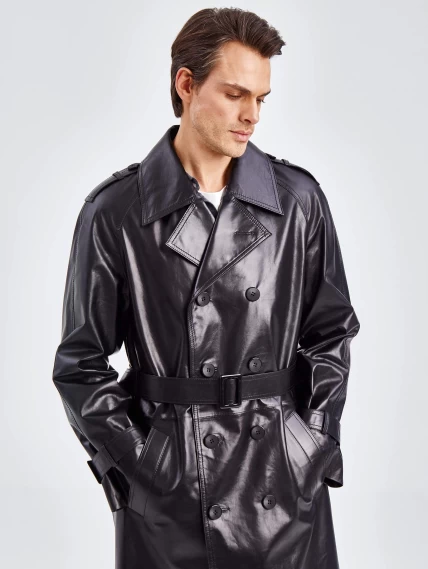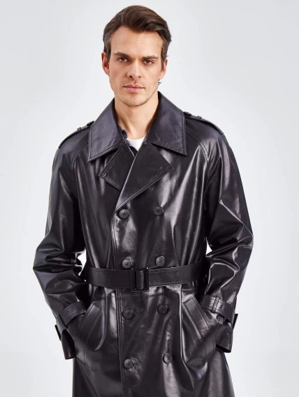 Товар двубортное мужское кожаное пальто премиум класса 553, черное, размер 52, артикул 71340 выполнен из натуральной кожи с застежкой пуговицы. Рассчитан на сезон: демисезон. Длина изделия 113 см, силуэт прямой.